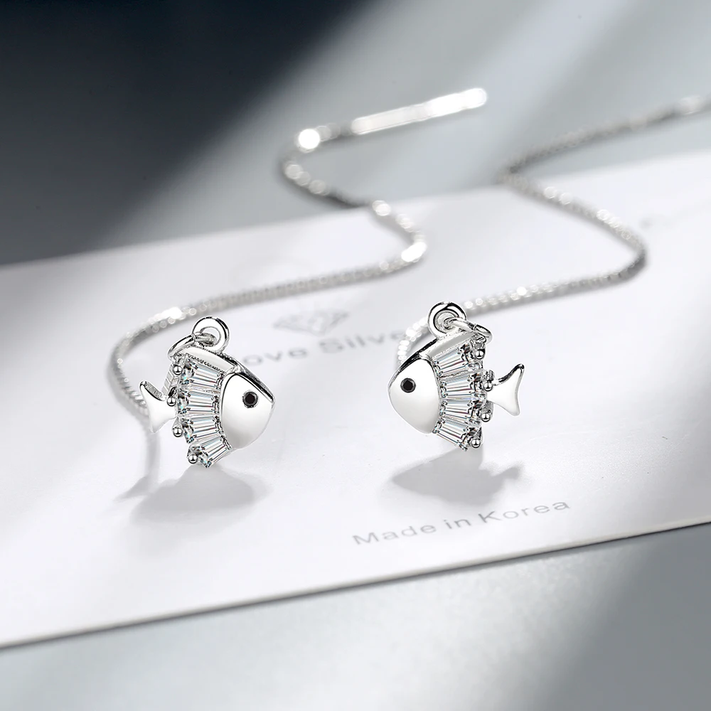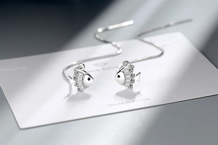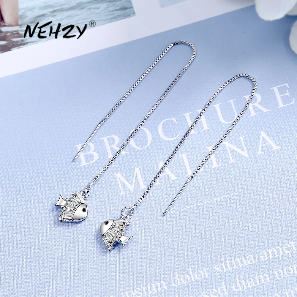 NEHZY 925 стерлингового серебра, новые женские модные ювелирные изделия высокого качества простые с украшением в виде кристаллов Циркон с длинной бахромой серьги рыбы