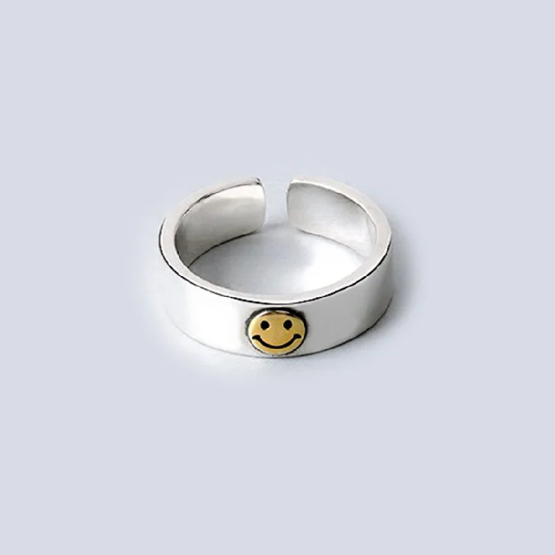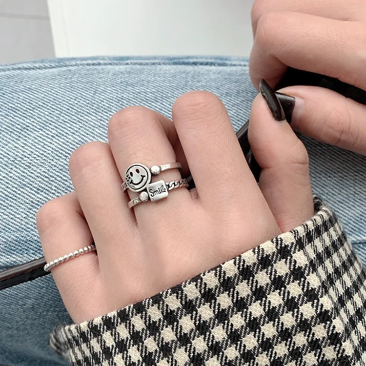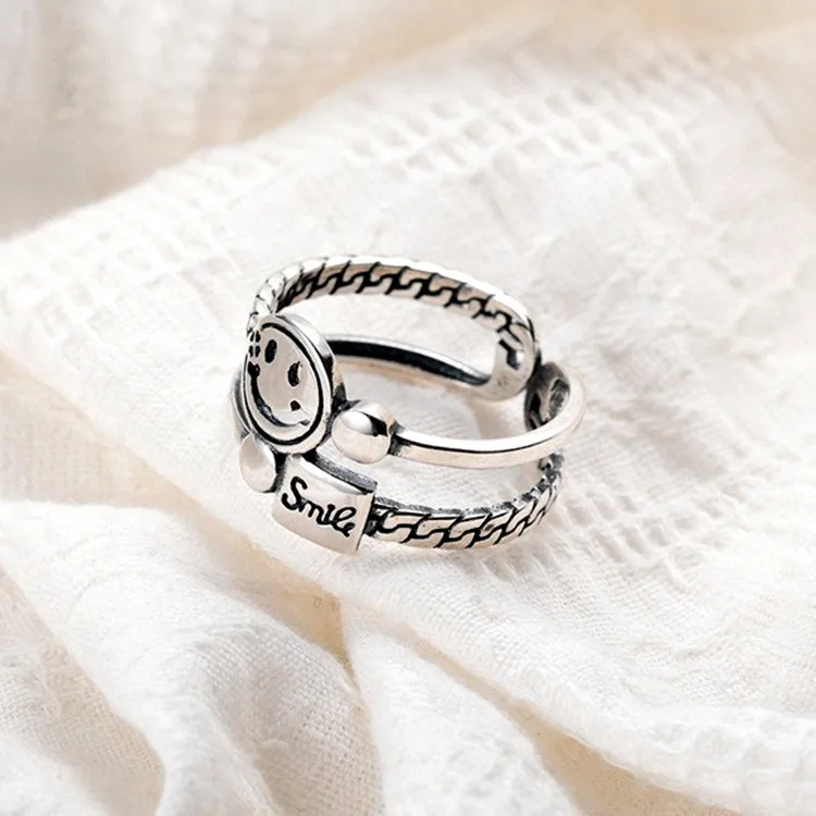 Многослойные со счастливым смайликом Открытое кольцо для Для женщин цвет: старое серебро простой с милыми геометрическими улыбающиеся лица Регулируемые кольца A917