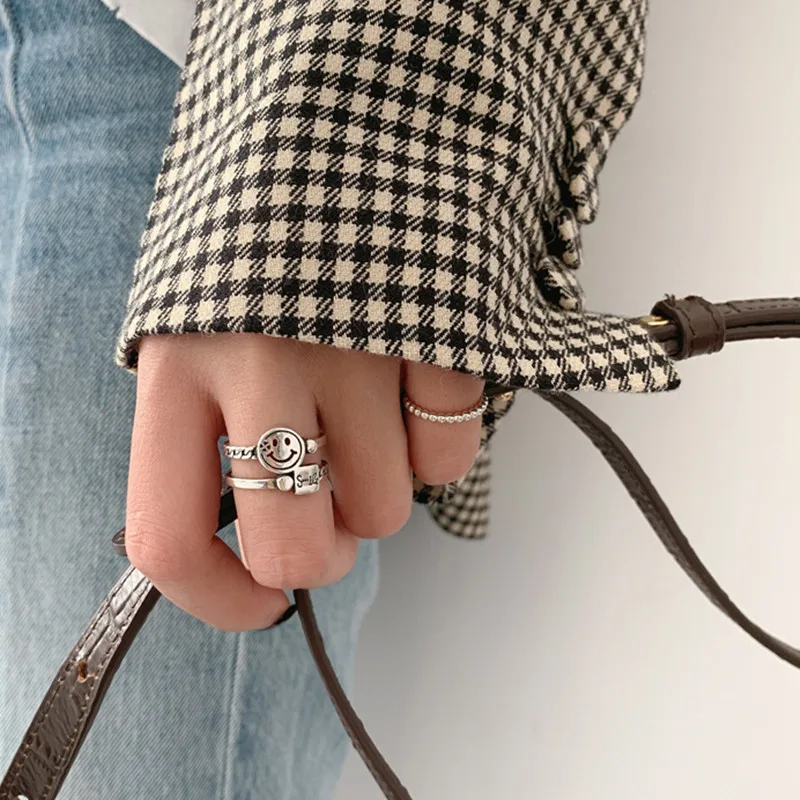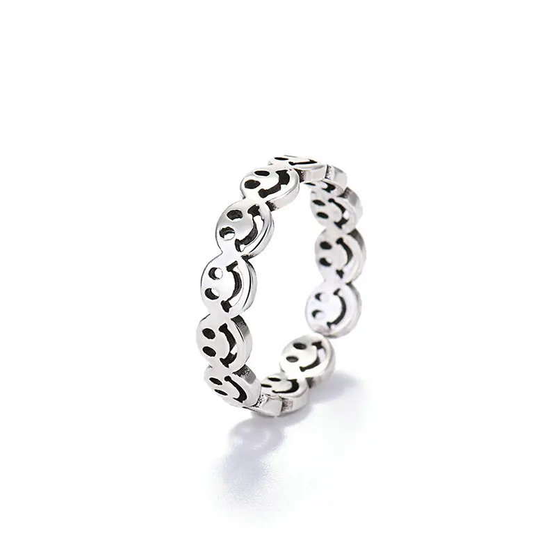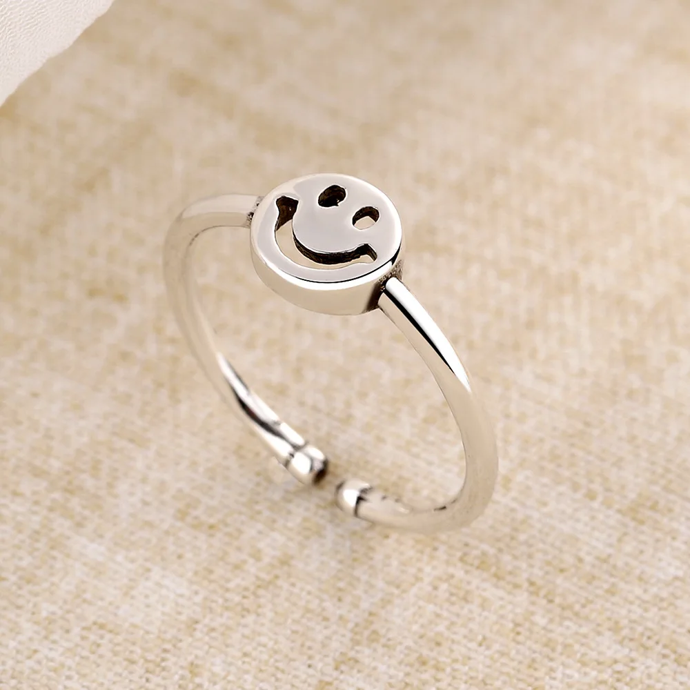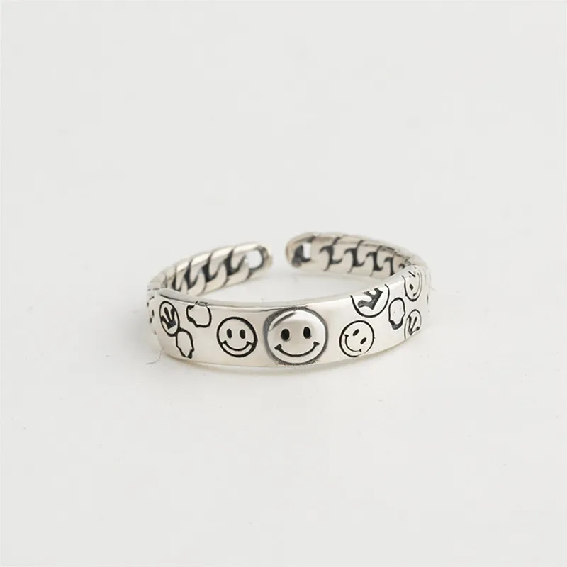 Кольцо для женщин, регулируемое, в стиле ретро, с любовным плачущим лицом, A914, цвет: старое серебро