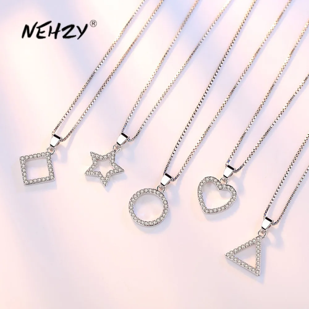 NEHZY S925 Новая женская модная бижутерия, высокое качество, простой кубический цирконий, круглый кулон, ожерелье, длина 45 см