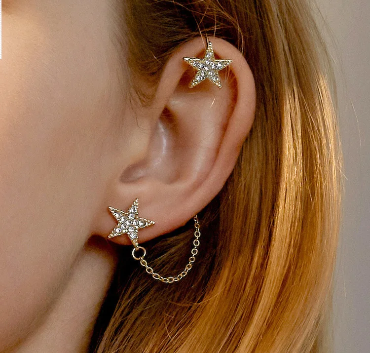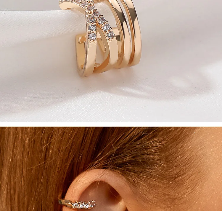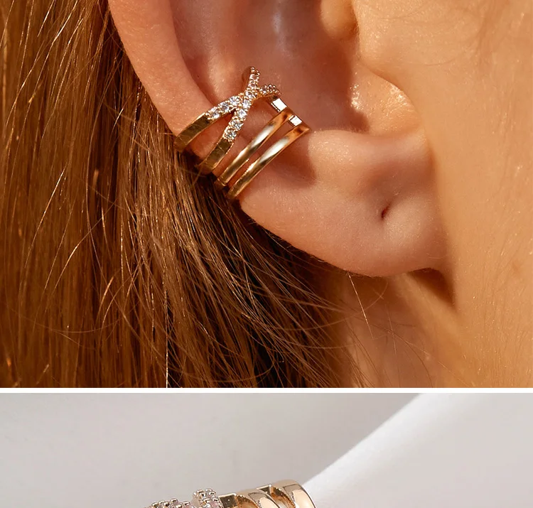 Серьги-каффы золотые для ушей женские, модные циркониевый зажим серьги для альпинистов без Имитация пирсинга, аксессуары для хрящевых тканей, подарок, 1 шт.