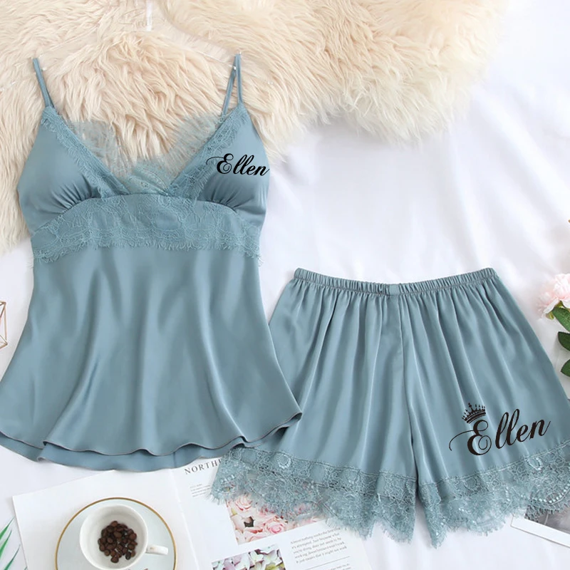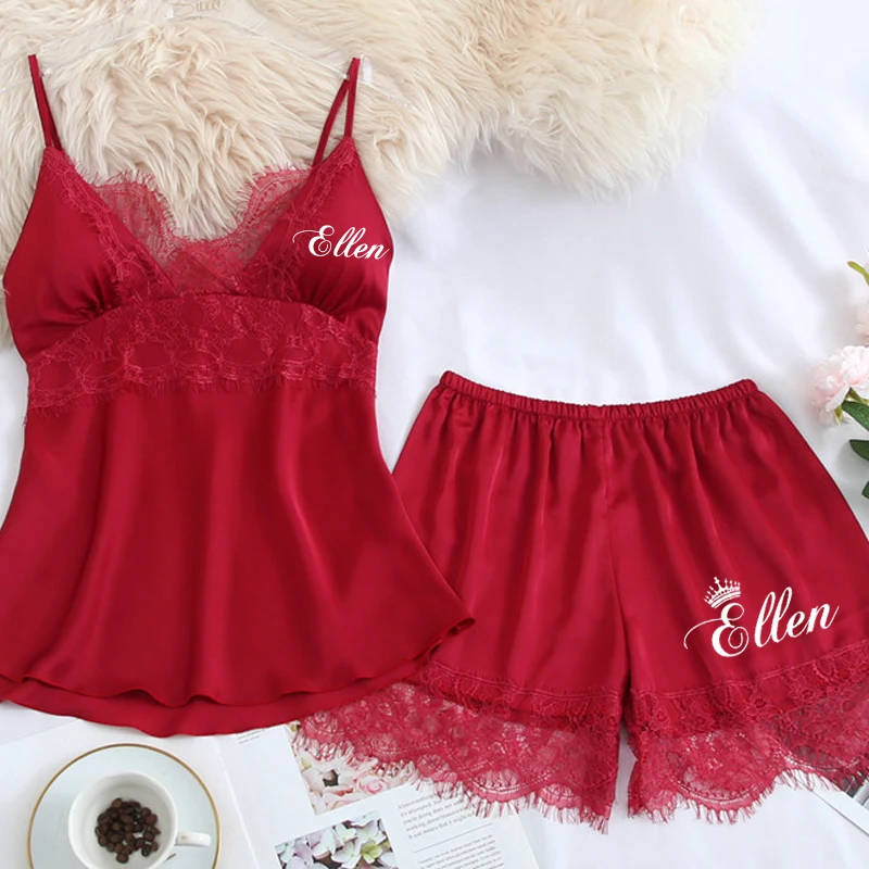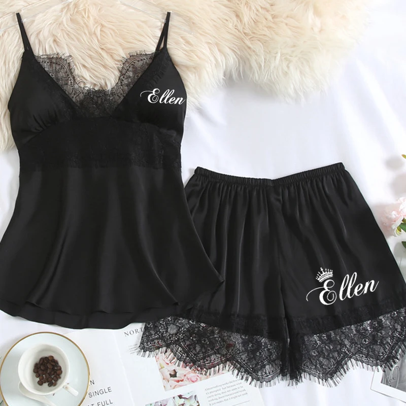 2 предмета по индивидуальному заказу название Для женщин одежда для сна из искусственного шелка и сатина, пижамы, пижамный комплект с длинными рукавами День рождения, пижамы, одежда для дома