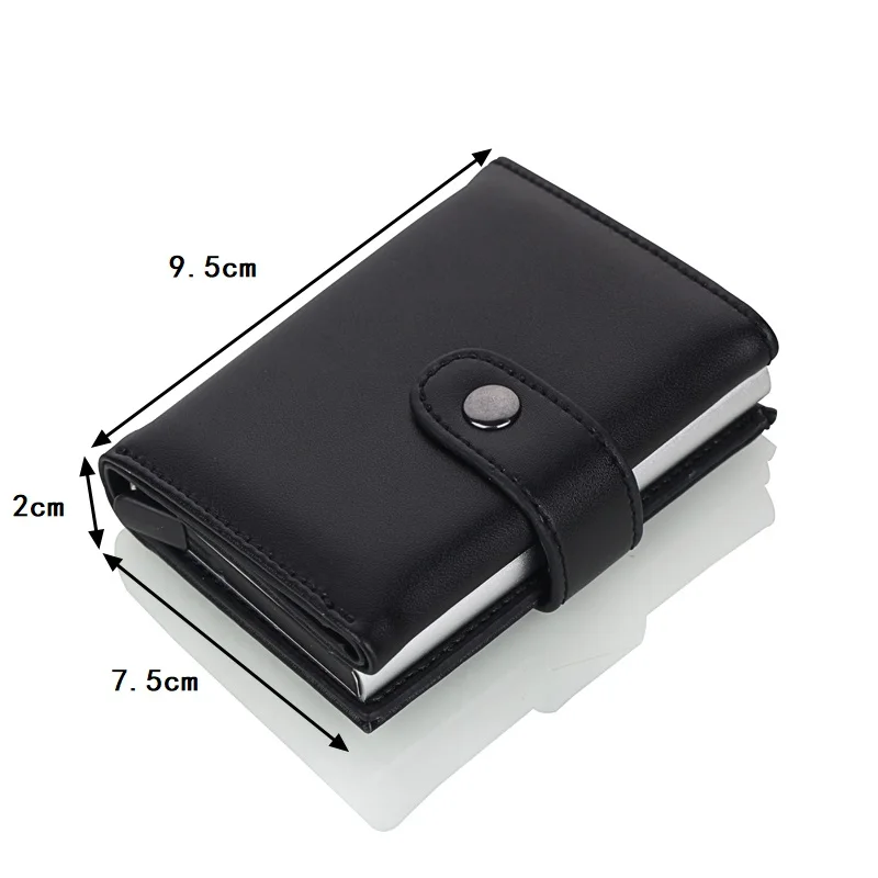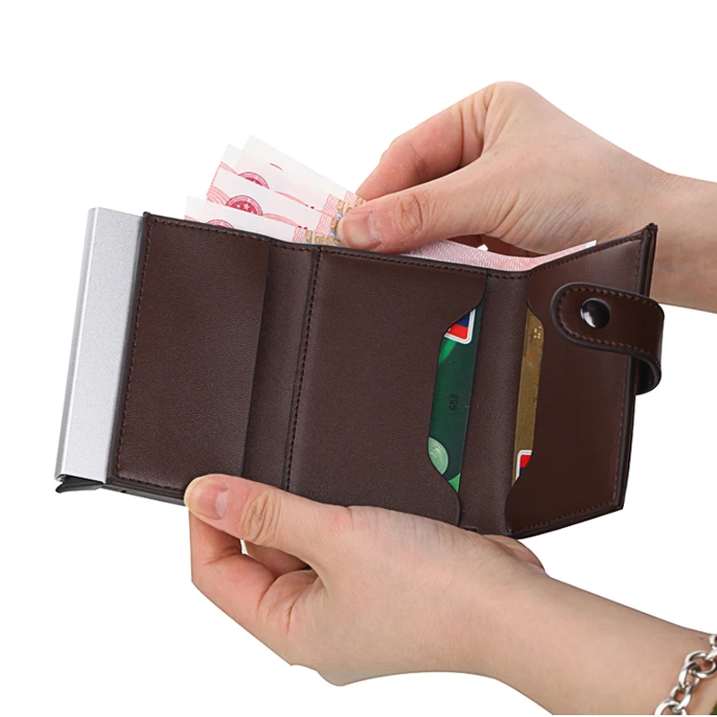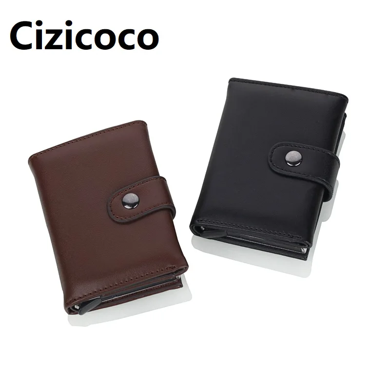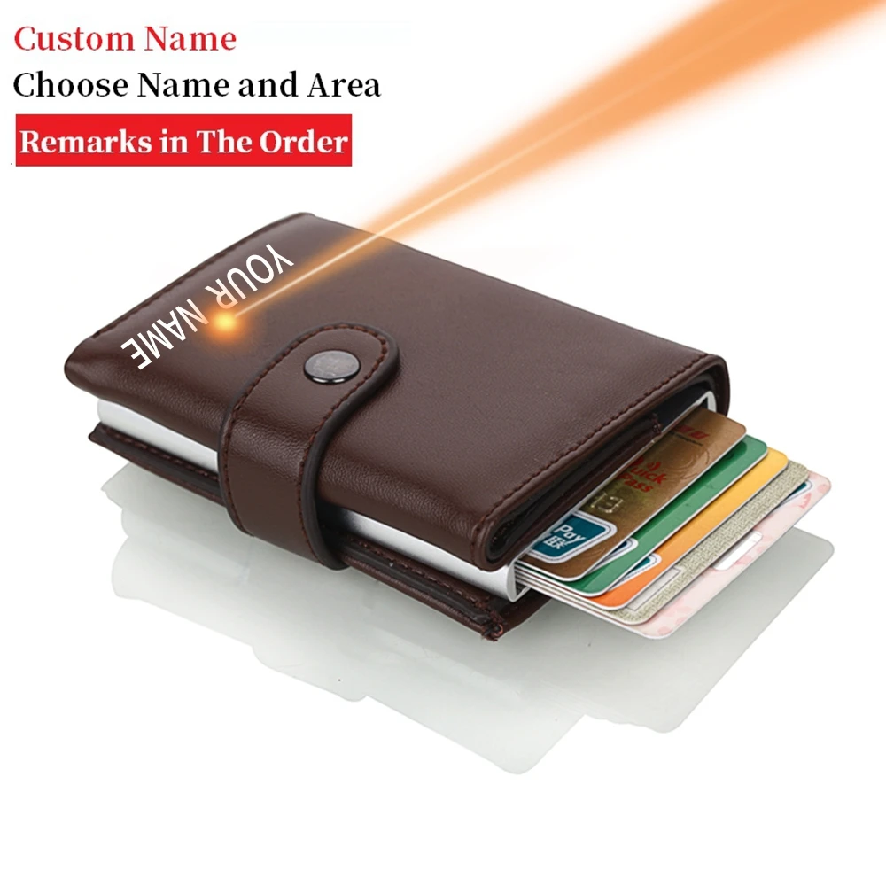 Пользовательское имя металлический держатель для Карт RFID Алюминий кредитных держатель для карт из искусственной кожи чехол-портмоне с защитой от краж Для мужчин Автоматическая Pop Up RFID Бумажник