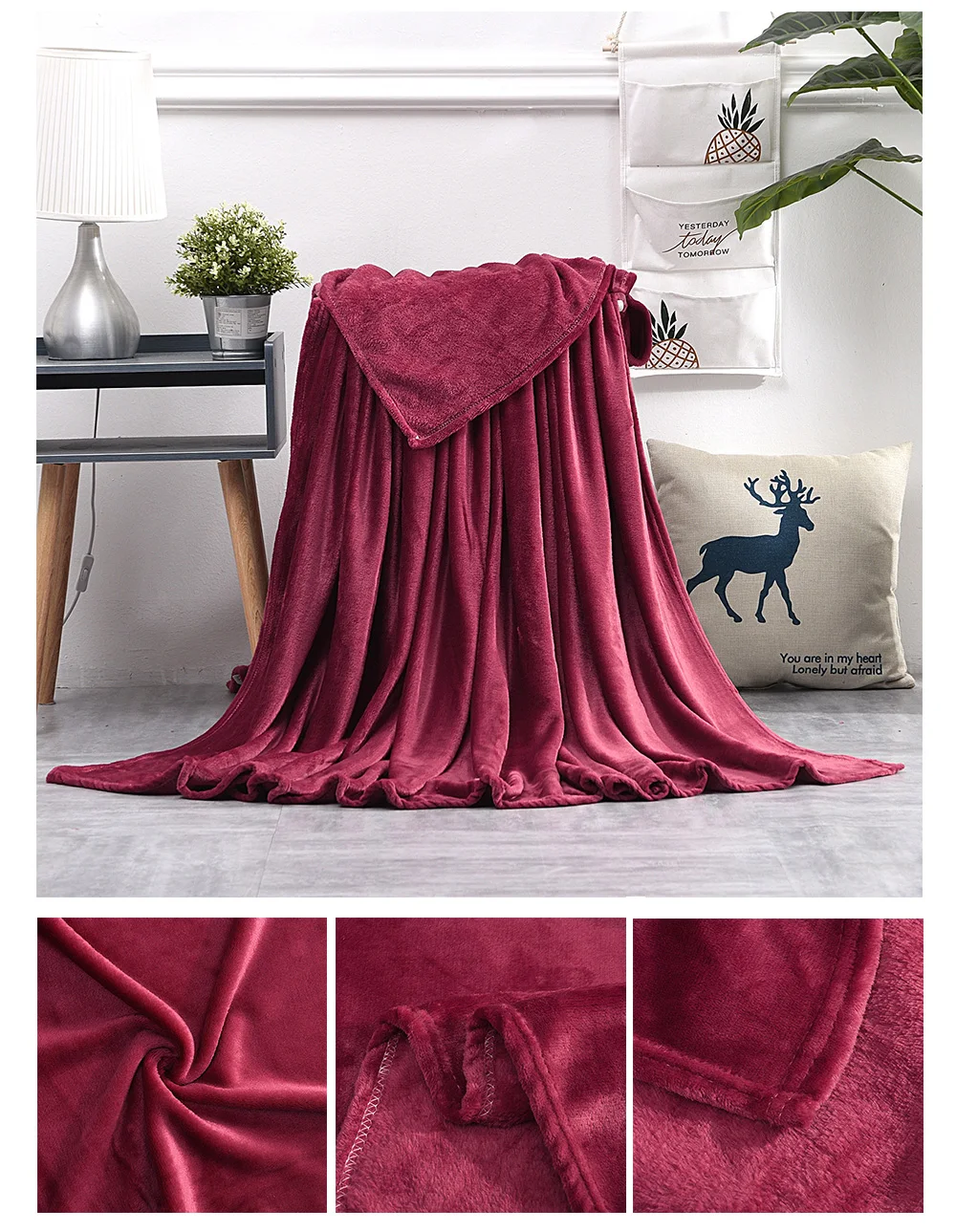 Мягкое фланелевое одеяло из кораллового флиса в американском стиле, теплое одеяло для пикника на открытом воздухе, одноцветное одеяло, постельные покрывала