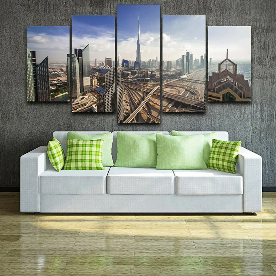 Dubai Skyline With Architect 5 pcs Modern Home Wall Decor Canvas
