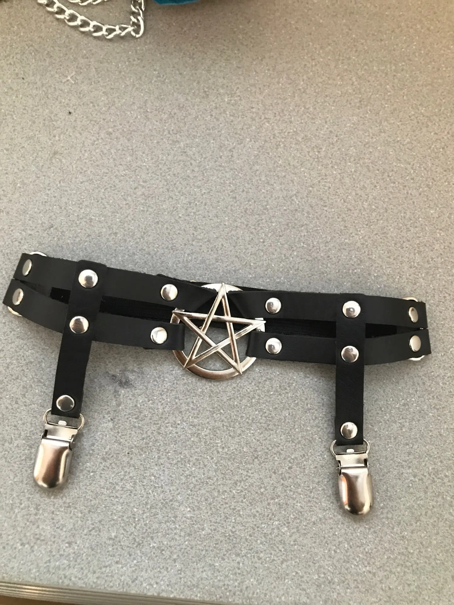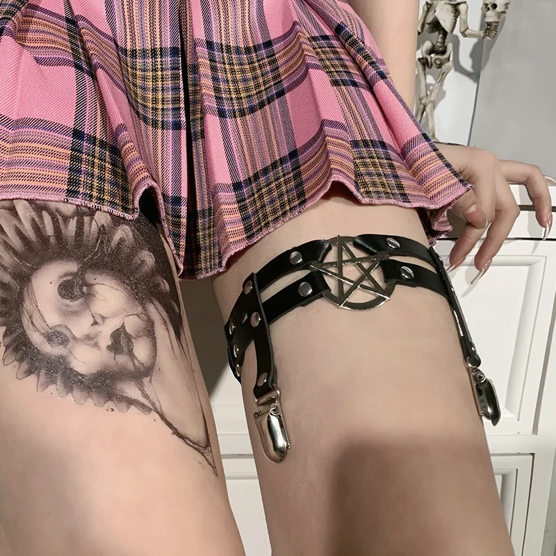 Кожаная подвязка с пентаграммой AltGirl, Харадзюку панк готика, кольцо для ног, Готическая уличная одежда, Y2k, гранж, эластичная подвязка ножные кольца