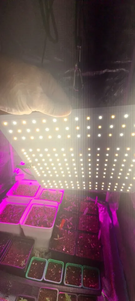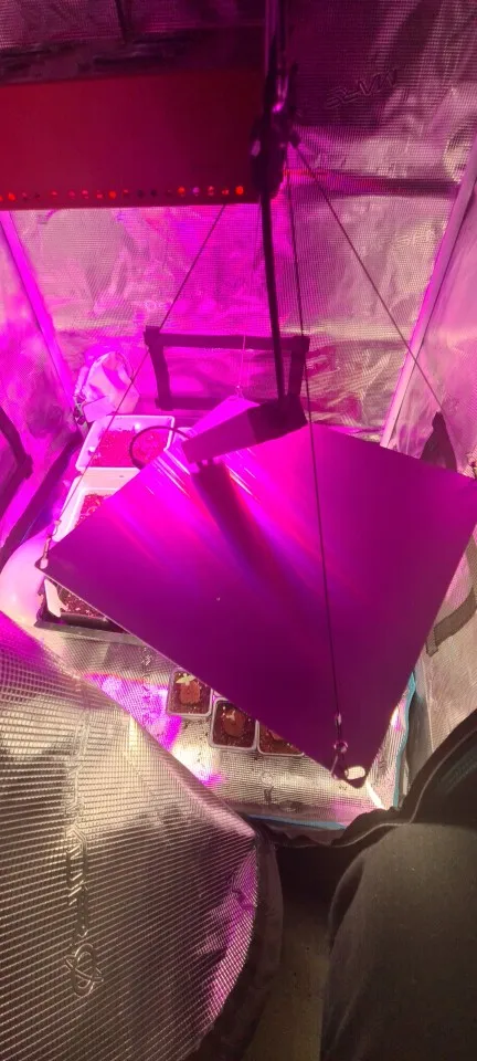 Отличный свет по цене. Вы можете положить их действительно близко к вашим растениям, свет не выдает слишком яркое тепло. Положите много близко друг к другу для хорошего даже покрытия навеса.
