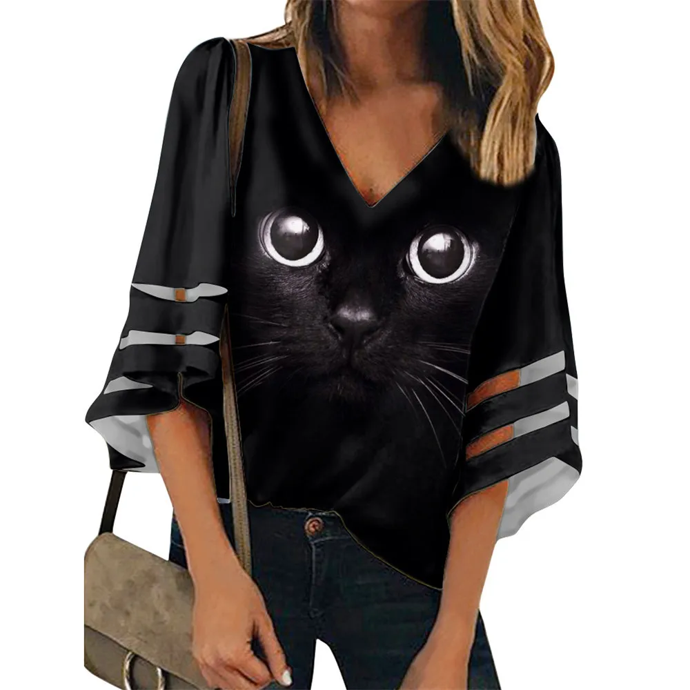 Женская блузка с 3D рисунком кота, леопарда, слона, собаки, забавная Повседневная рубашка для подростков, женские рубашки, 2020