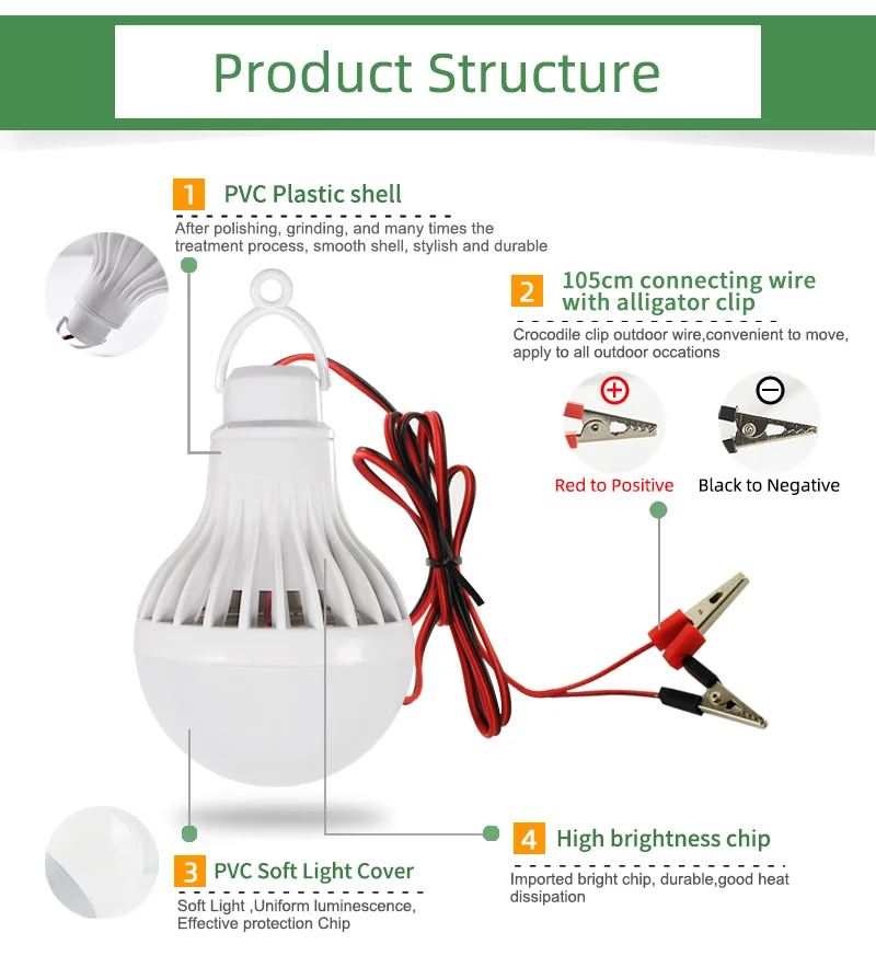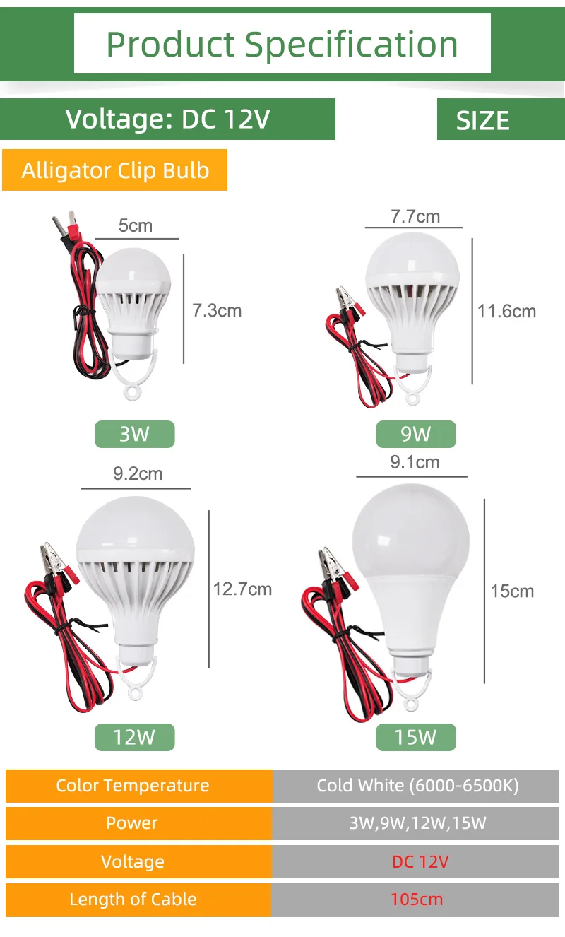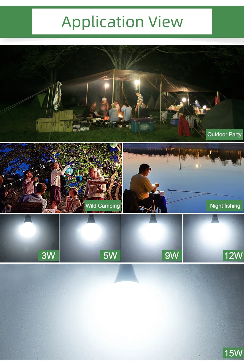 Светодиодная лампа Kaguyhime с зажимомE27, портативная кольцевая лампа для кемпинга, рыбалки, экстренного освещения, 12 В постоянного тока, 220 В переменного тока, 3 Вт, 7 Вт, 9 Вт, 12 Вт, 15 Вт