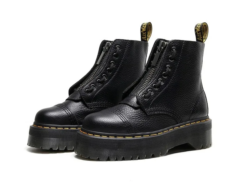 Женские ботинки; Классические ботинки Martin из натуральной кожи с рисунком личи; Женские ботинки на платформе; Пара модных коротких ботинок