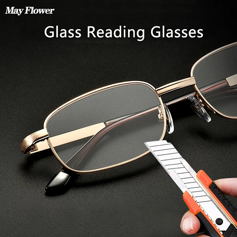 Стекло для чтения с защитой от царапин es Ретро квадратные пресбиопические очки со стеклянными линзами металлическое стекло для дальнозоркости es мужские стекла es + 3,5 + 4