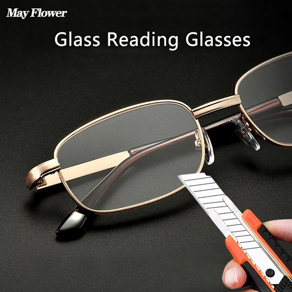 Пресбиопические очки с защитой от царапин для мужчин, квадратные металлические очки с линзами для чтения, пресбиопии, пресбиопии, в стиле ретро, es + 3,5