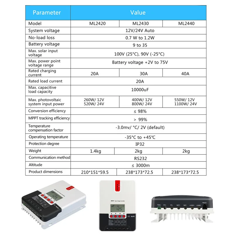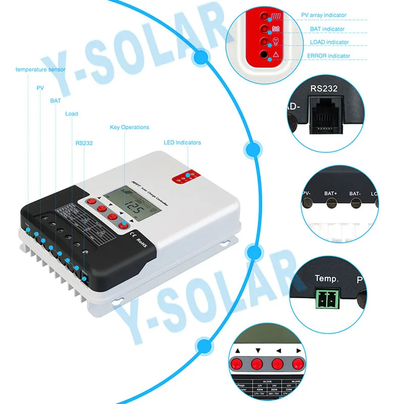 20a30a40a солнечной зарядки и разрядки контроллер со слежением за максимальной точкой мощности 12V 24V RV литиевая батарея бытовой контроллер