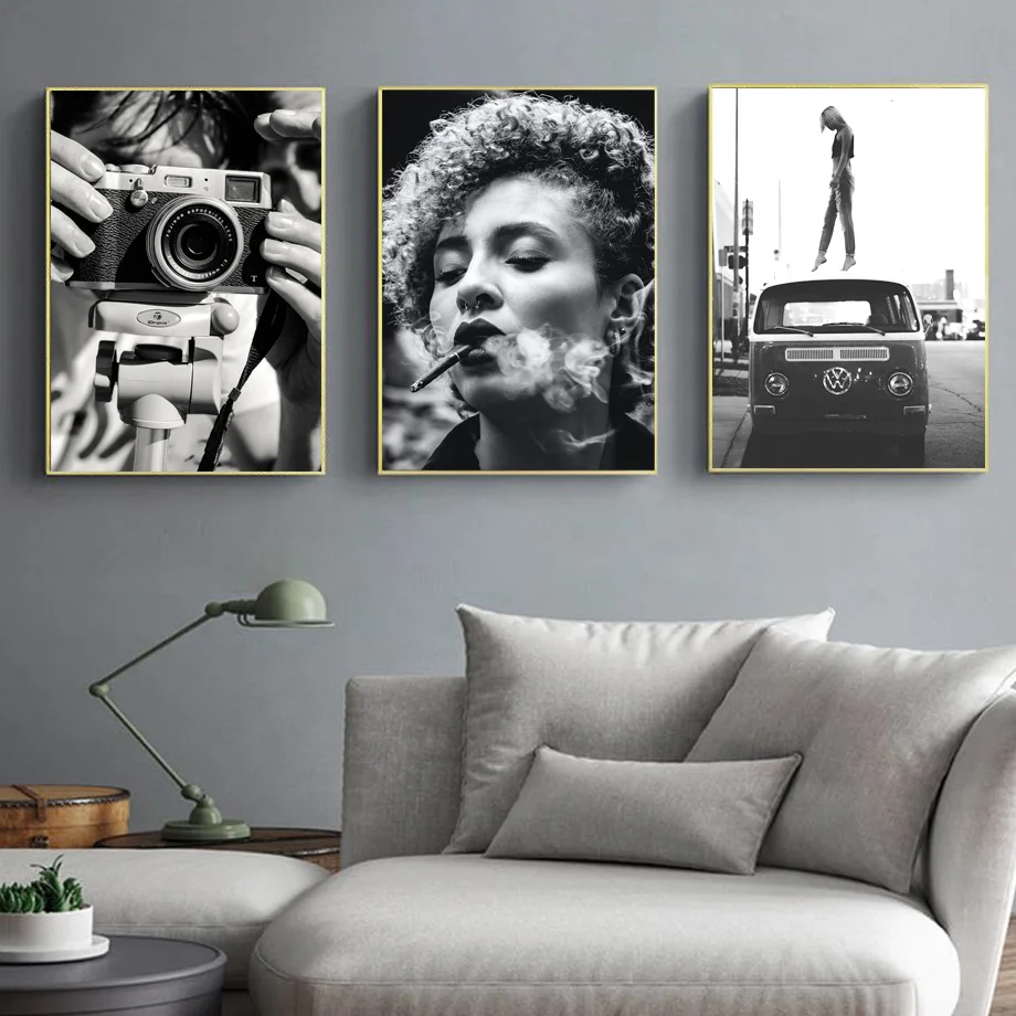 Винтажная камера Женская церковь черная белая настенная Картина на ...