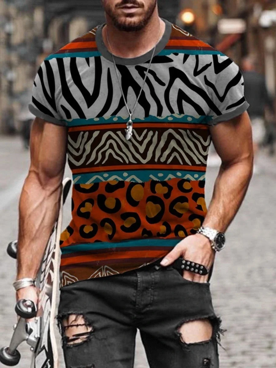 Футболки мужские, большого размера, с этническим принтом, с круглым воротником, в стиле Харадзюку, винтажные, лето 2021