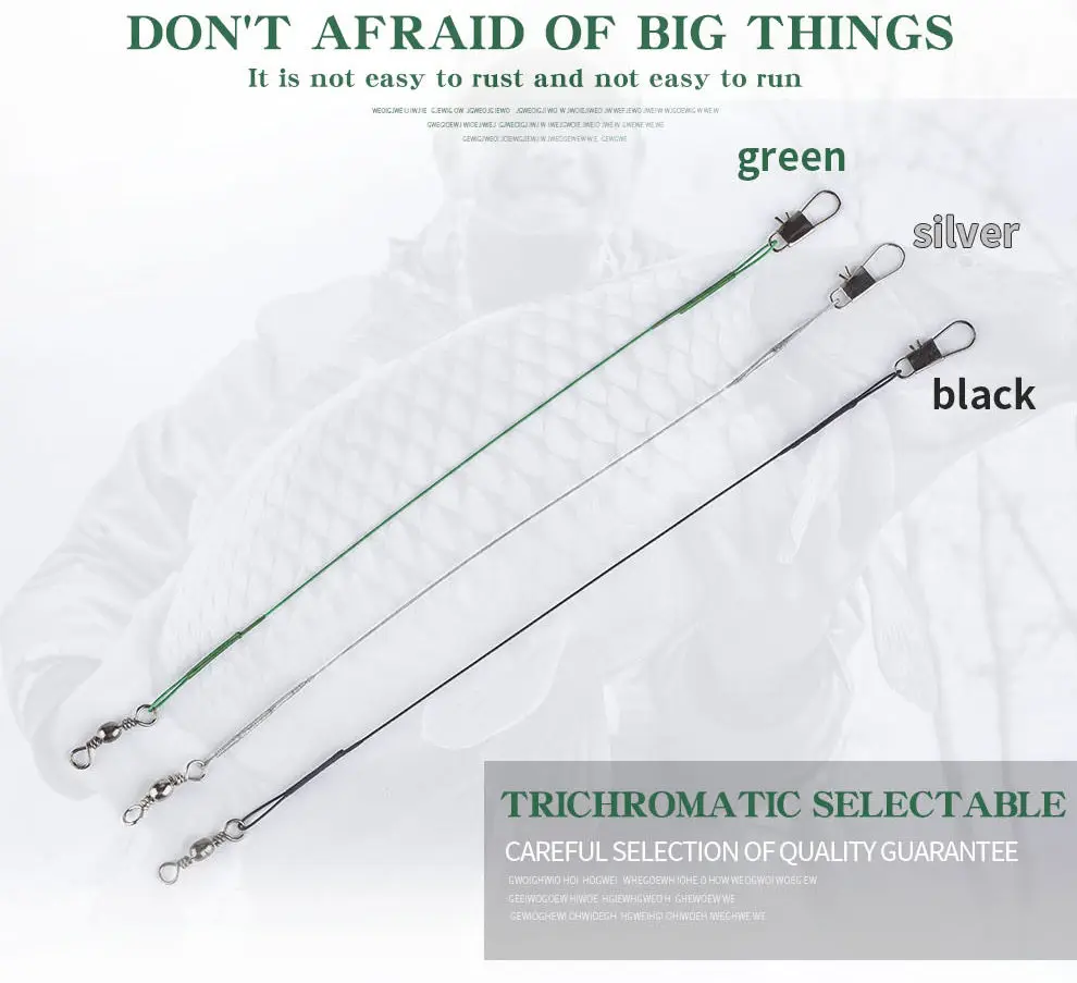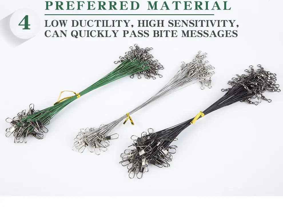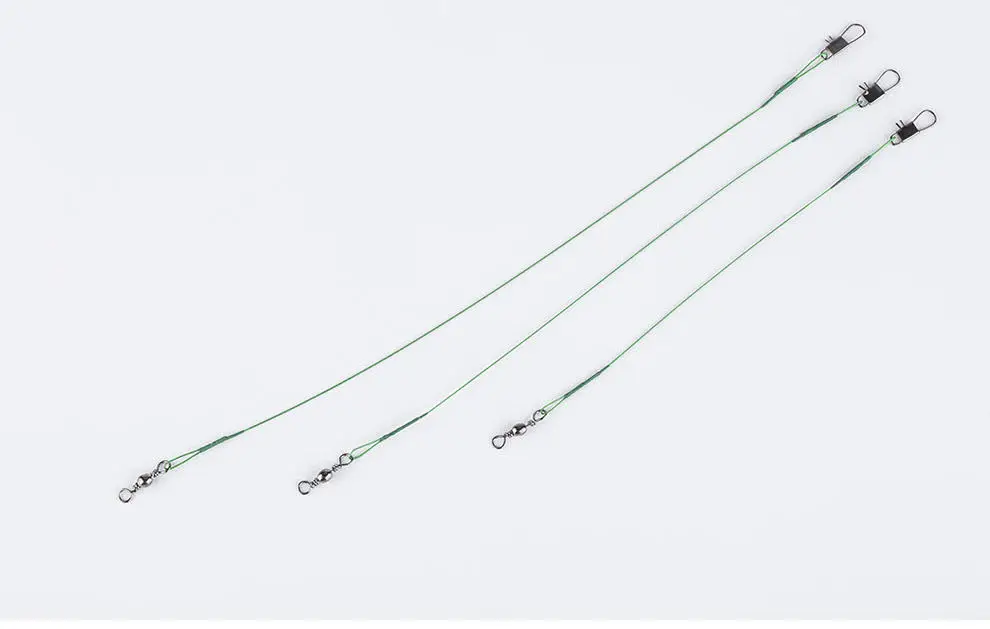 Особенности: 1. Замечательный рыболовный инструмент для любителей рыбалки 2. Не повредите рыбу и леску 3. Простота использования 4,5 видов длины на выбор (15/20/25/30 см, 50 см) 5. Идеально подходит для использования в соленой или пресной воде. Характеристики: Цвет: зеленый/черный/серебристый Материал: стальная проволока Длина: 15см, 20см, 25см, 30см, 50см Количество: 20 шт./компл. Вес: прибл. 0,7 г-0,8 г/шт. (все количества зависят от отображения изображения) В комплект входит: 20 шт. * лески