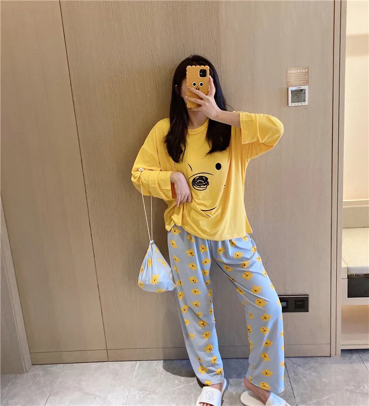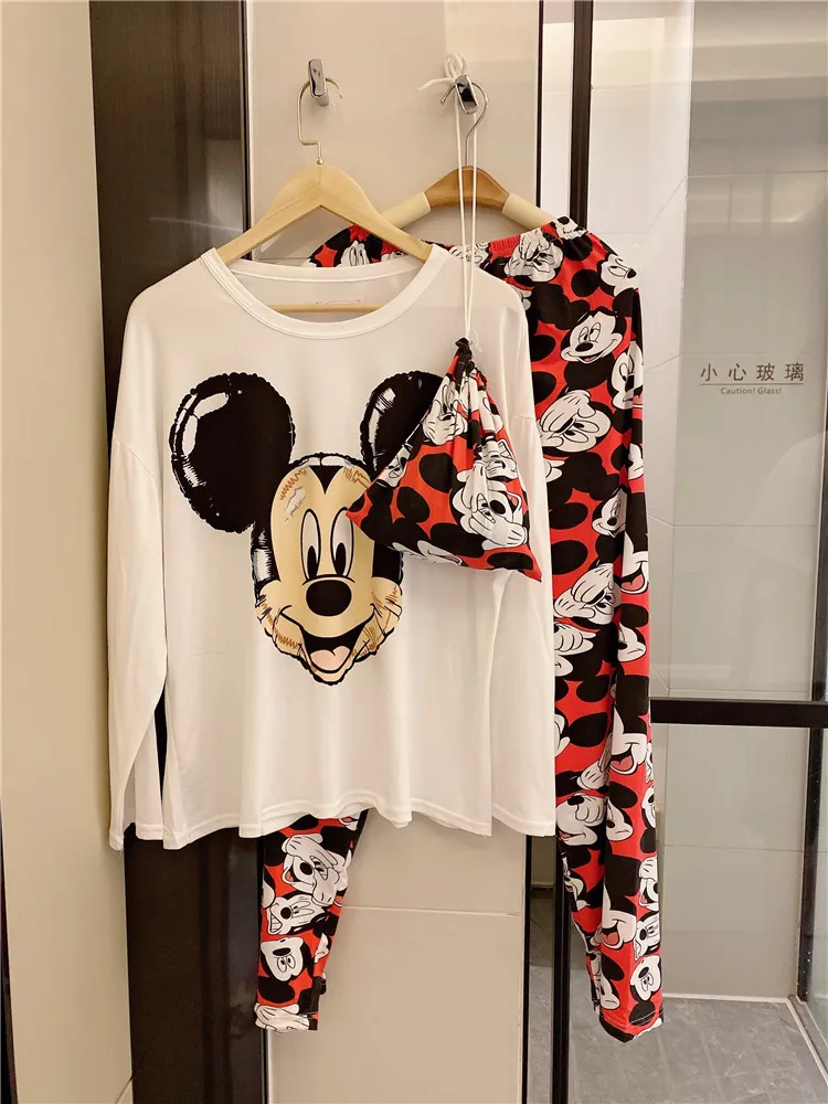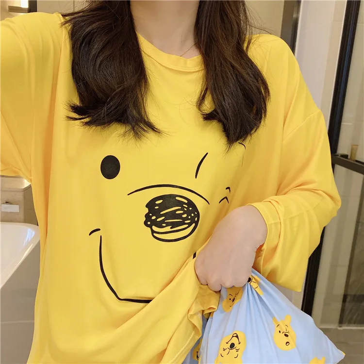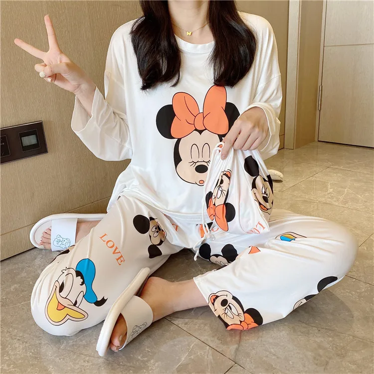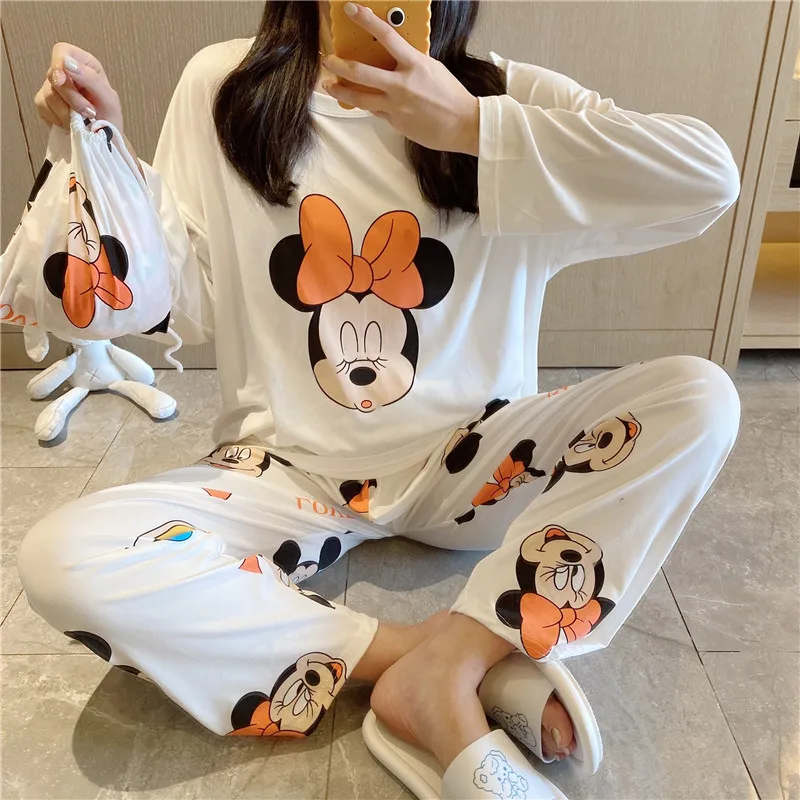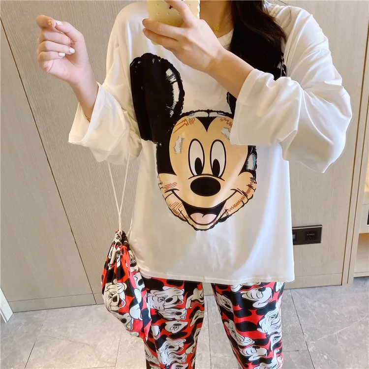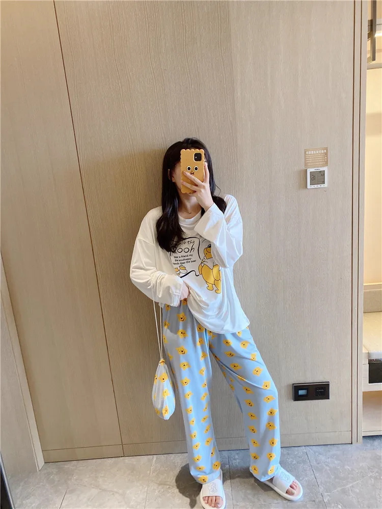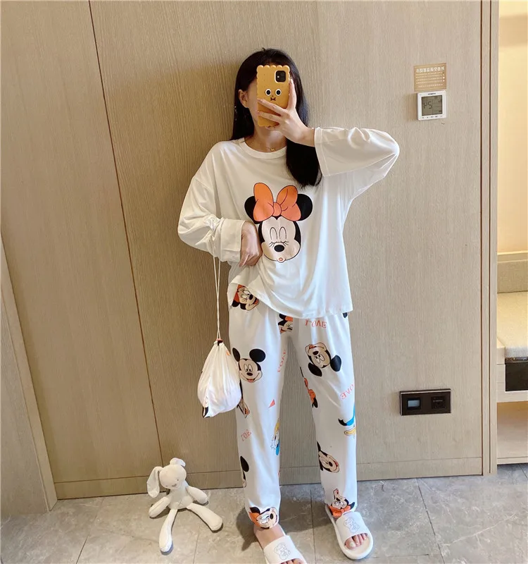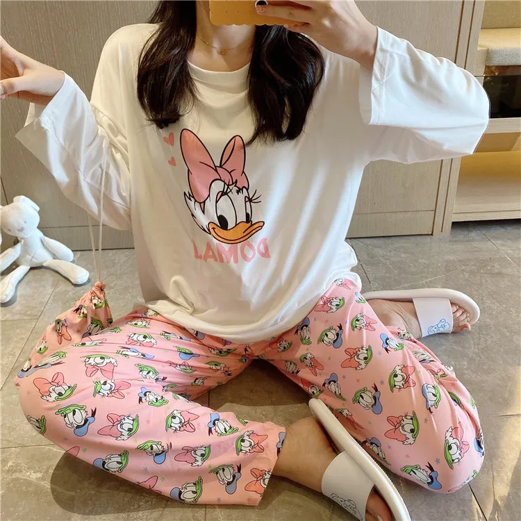 Пижама женская с принтом маргариток Disney, милая пижама с длинным рукавом и длинными штанами, комплект домашней одежды, на весну и осень