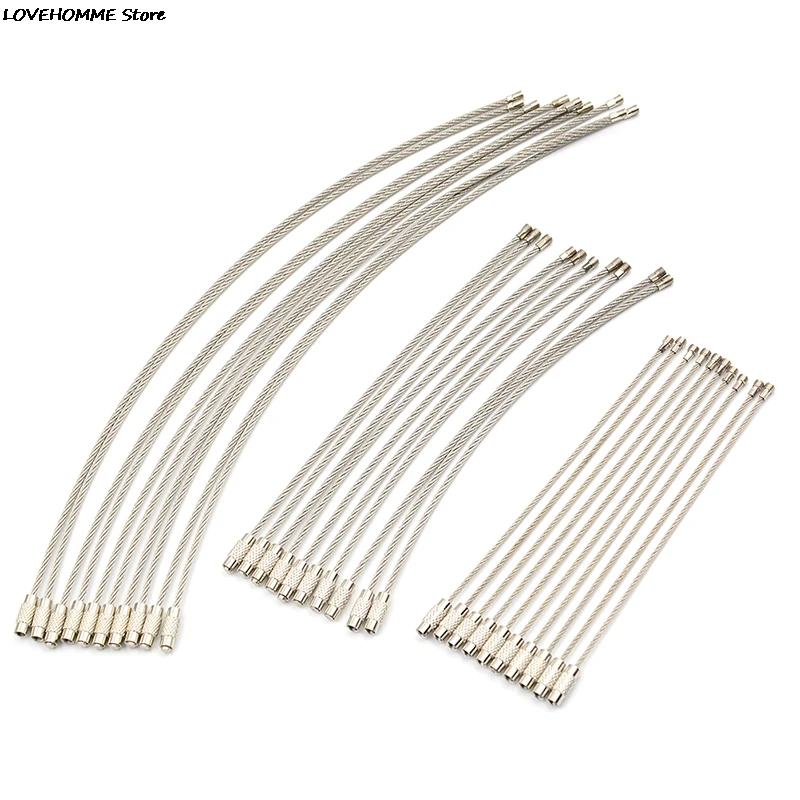 10 шт. 102025 см брелок бирка веревка из нержавеющей стали проволока кабель петля винт устройство блокировки кольцо Ключ Брелок Круг лагеря подвесной инструмент