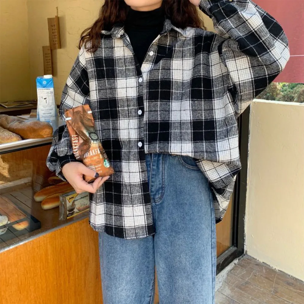 Simple Casual Plaid Loose shirtskorean style blouses shirts