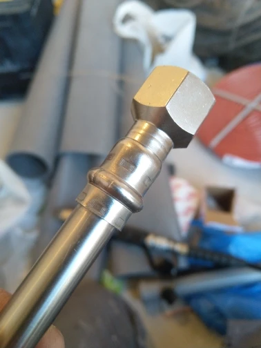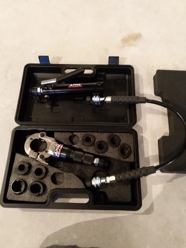 Здравствуйте. Пришел быстро, дней за 10. Хорошо упакован, протечек нет, в рабочем состоянии. Покупал как альтернативу рычажному ручному прессу от Valtec. На нержавейку приходилось брать инструмент в аренду. Не будем сравнивать с электрогидравлическим, качество и скорость монтажа не сравнимы. Сравним с ручным. Ручной 16-20 диаметр выигрывает в скорости, гидравлическим тратишь больше времени. Но им можно работать в труднодоступных местах. Усилие обжатия очевидно больше на гидравлике. На фото видно обжат 20 й диаметр ручным и гидравлическим. Толщина обжатия больше у гидравлики. Начиная с 26 диаметра усилие возрастает и гидравликой пользоваться удобнее. Попробовал 15 ю нержавейку, жмёт. При большом объеме работ всё таки лучше взять в аренду электрогидравлический. Скорость работ небольшая, удобство использования тоже ниже. Это минус. В целом вещь годная, но требует аккуратного обращения и контроля обжатия. Разъемы на шлангах стандартные, быстросъемы, можно подключить к насосу ещё что-то.