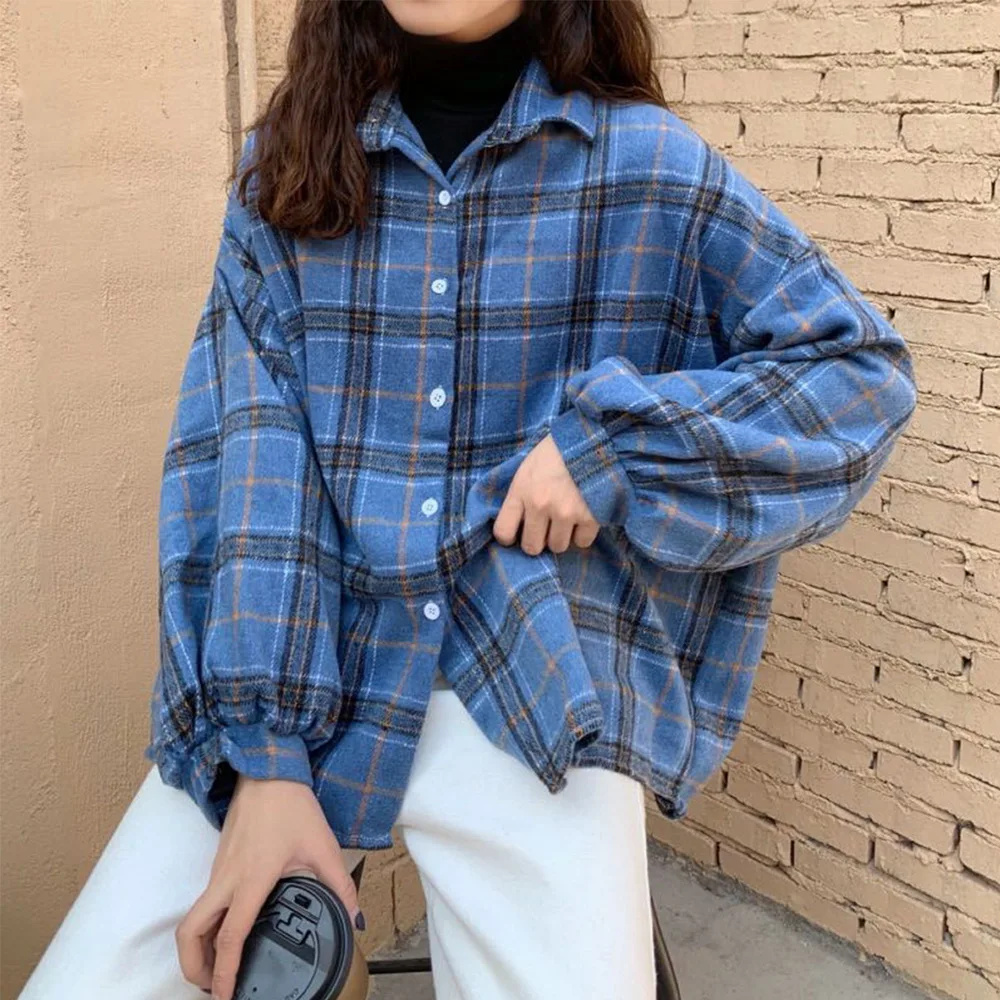 Женская Осенняя уличная блузка, женские рубашки, винтажная клетчата...