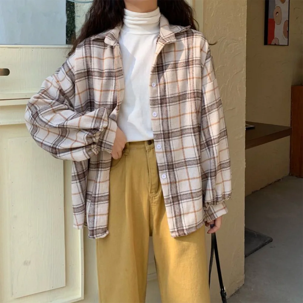 Simple Casual Plaid Loose shirtskorean style blouses shirts