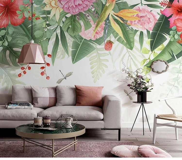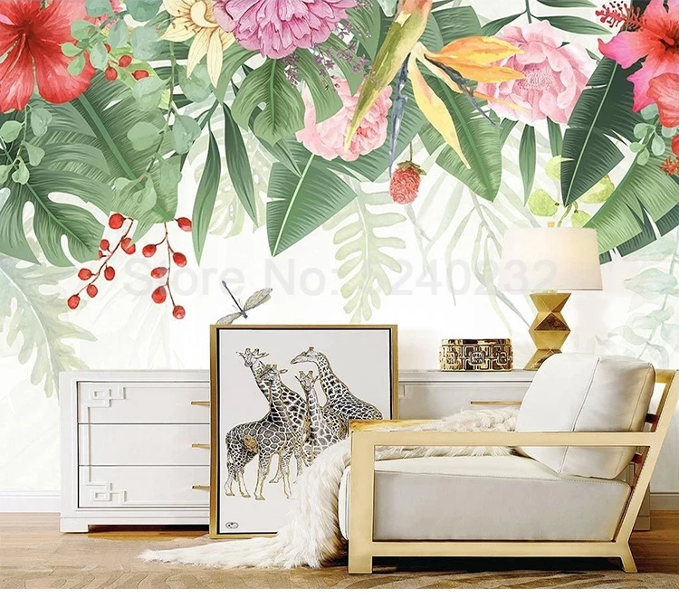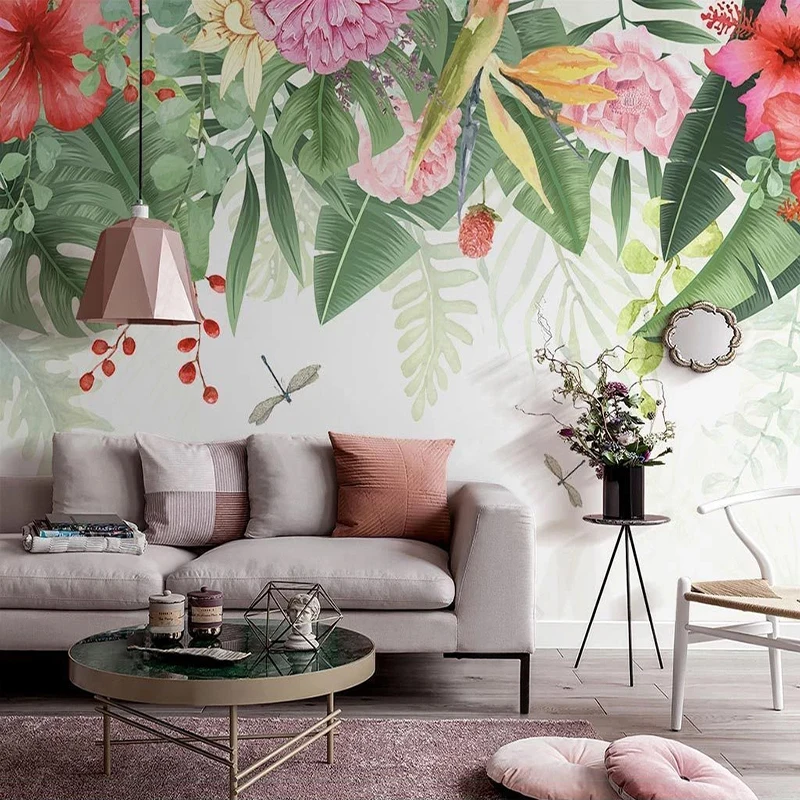 Пользовательская роспись 3D Ручная роспись акварельные растения зеленый лист цветок пасторальный стиль картина на стену в интерьере гостиная диван обои