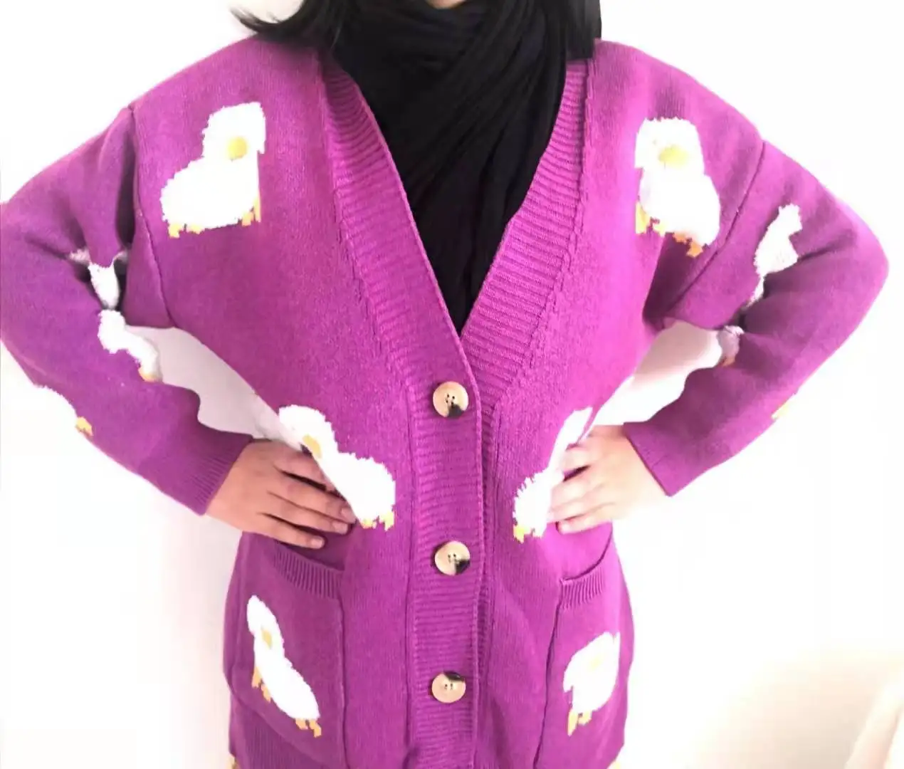 Женский трикотажный кардиган с V-образным вырезом и мультяшным принтом
