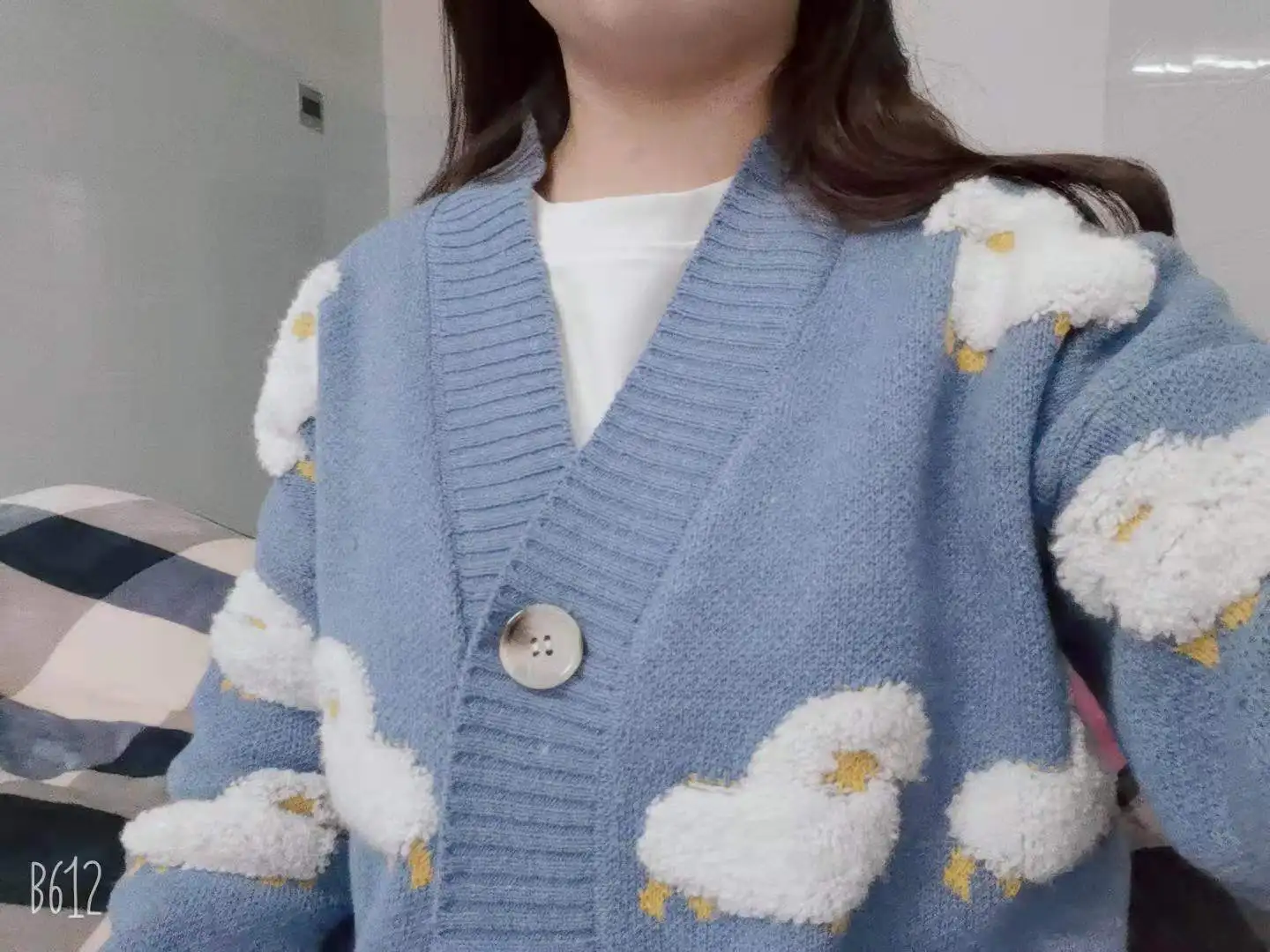 Вязаный кардиган с овечками, корейский новый милый свитер с мультип...