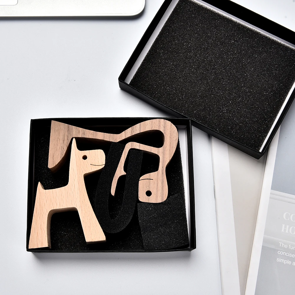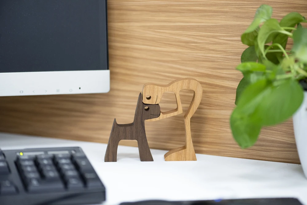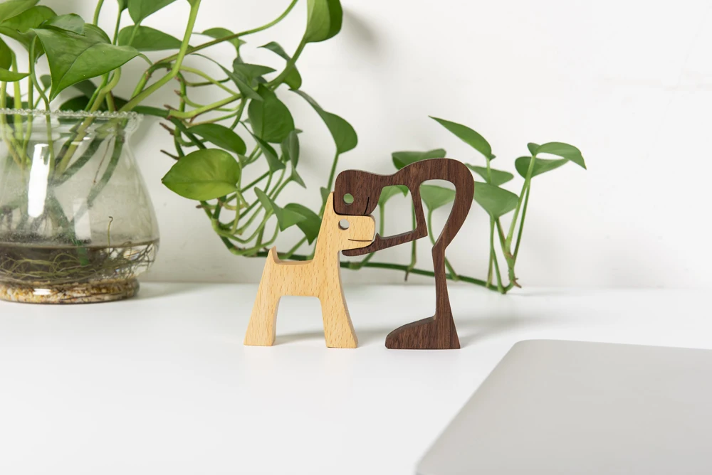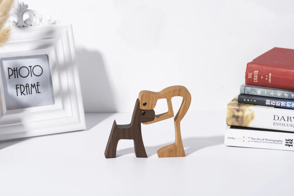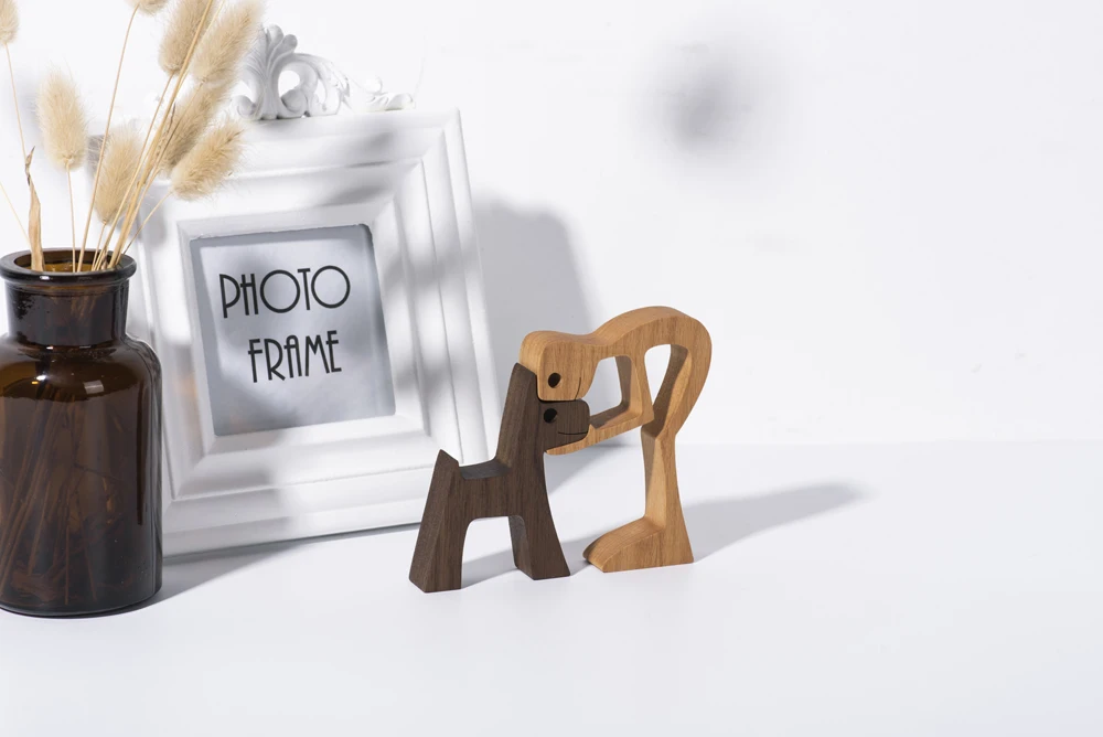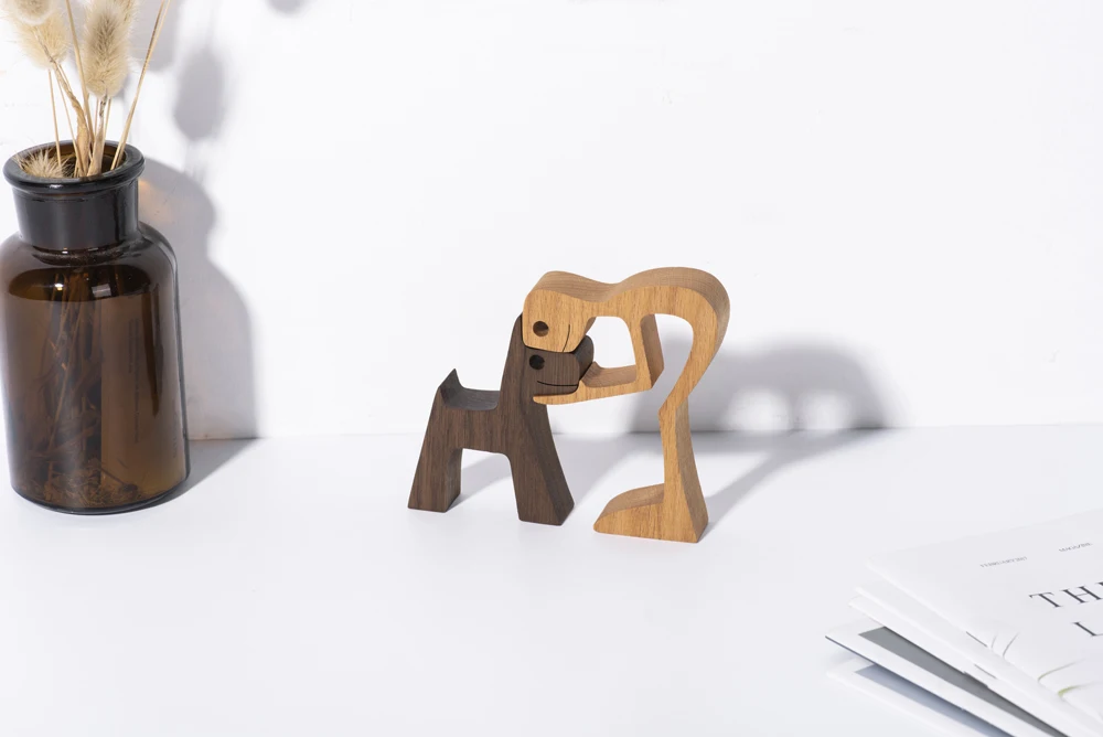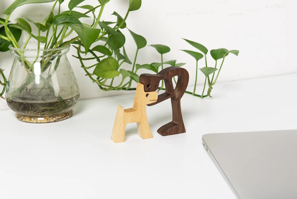 Креативные деревянные фигурки собак, украшение для стола, мужская и собака, статуя, искусство, резьба, миниатюрное украшение, домашний декор, стол Orna Men ts
