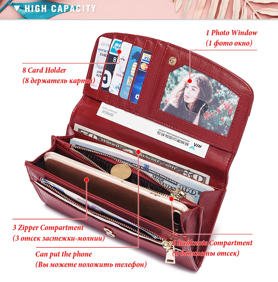 Модный женский клатч из воловьей кожи, удлиненное портмоне с Rfid, ...