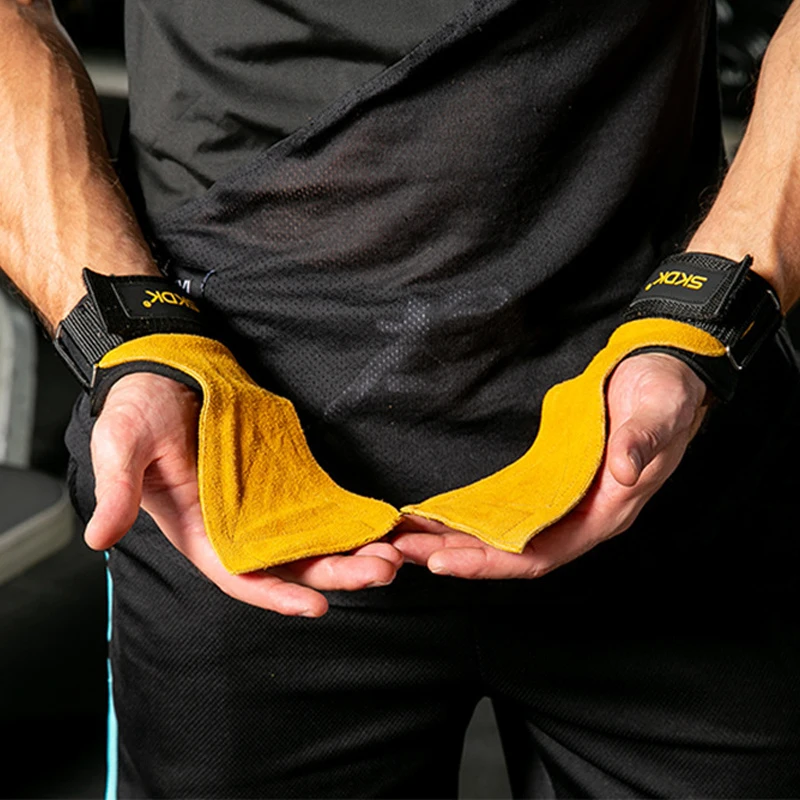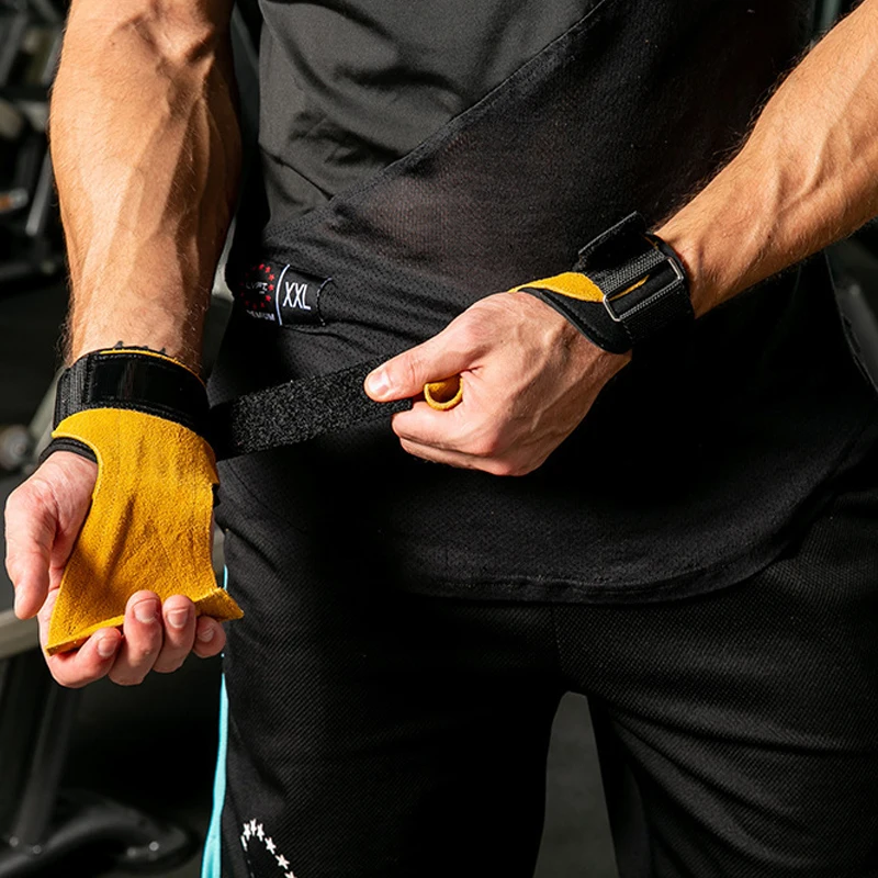 Перчатки для фитнеса, 1 шт., кожаные рукоятки, для поддержки запястья, защиты ладоней, для подтягивания, тяжелой атлетики, турника, гантели