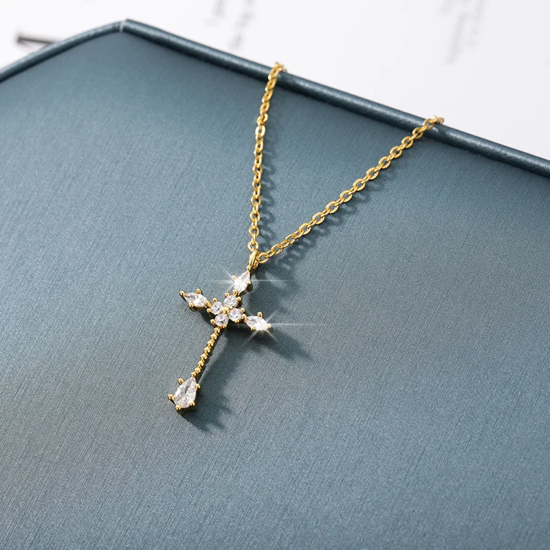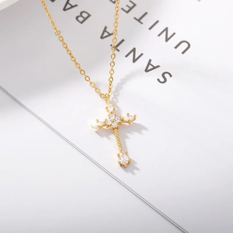 Ожерелье серебряного цвета, ювелирные изделия, женская свадебная мода, крест, фианит, кристалл, циркон, кулон, ожерелье, рождественский подарок 2021