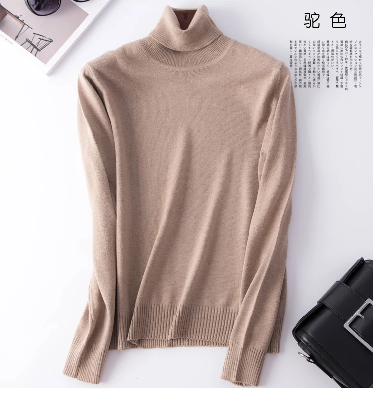 Женский кашемировый свитер с высоким воротником, базовая теплая уличная одежда для осени и зимы