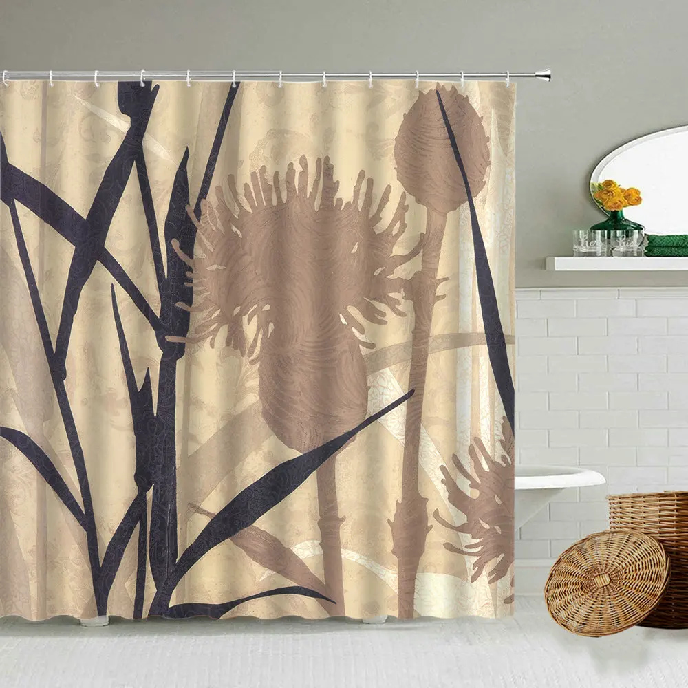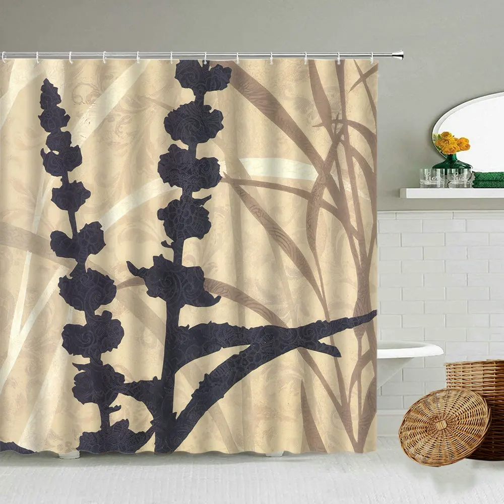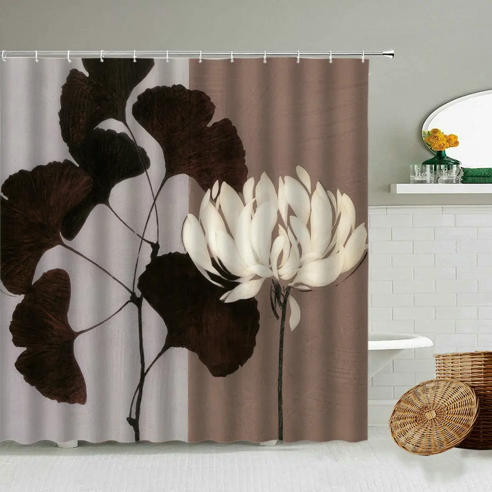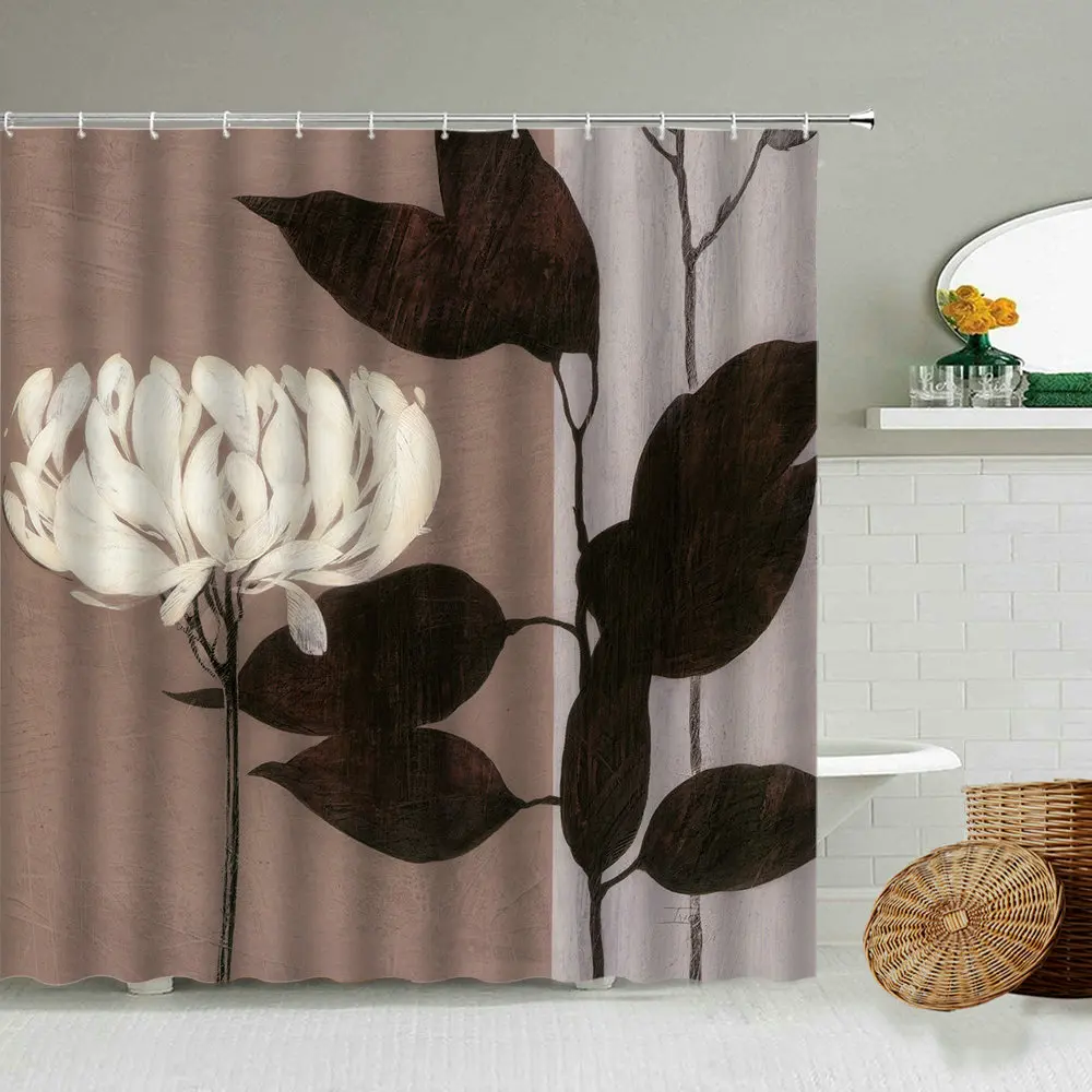 Европейская и американская винтажная занавеска для душа с растениями и цветами, черно-белая занавеска с лилией для ванной, водонепроницаемые занавески, украшение для дома