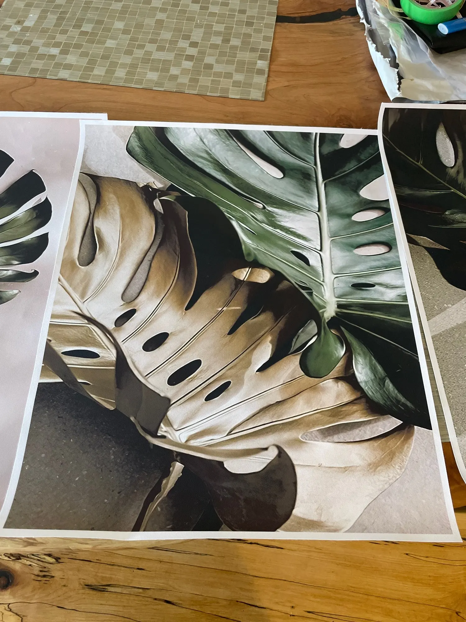 В целом хорошее качество, однако цвет немного отличается. На двух фотографиях (слева и справа) зеленый лист очень темный, они почти выглядят черными и зелеными, особенно по сравнению с тем, что посередине, которая показывает, что он зеленый. Был разочарован в этом. Также цвет фона на каждой из фотографий полностью отличается и не соответствует изображению на рекламе