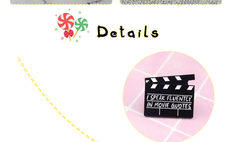 Черная кинодоска с эмалью, креативная брошь в виде клэпборда, мультяшный кинотеатр, значки на рюкзак, рубашки, ювелирное украшение в виде лацкана, подарок для друга