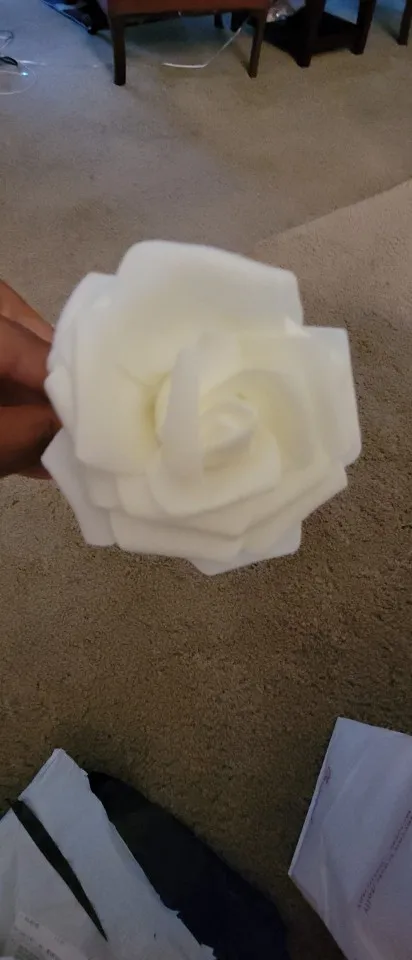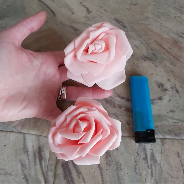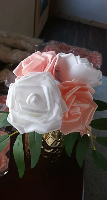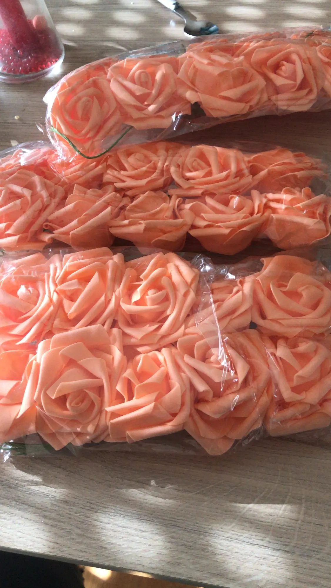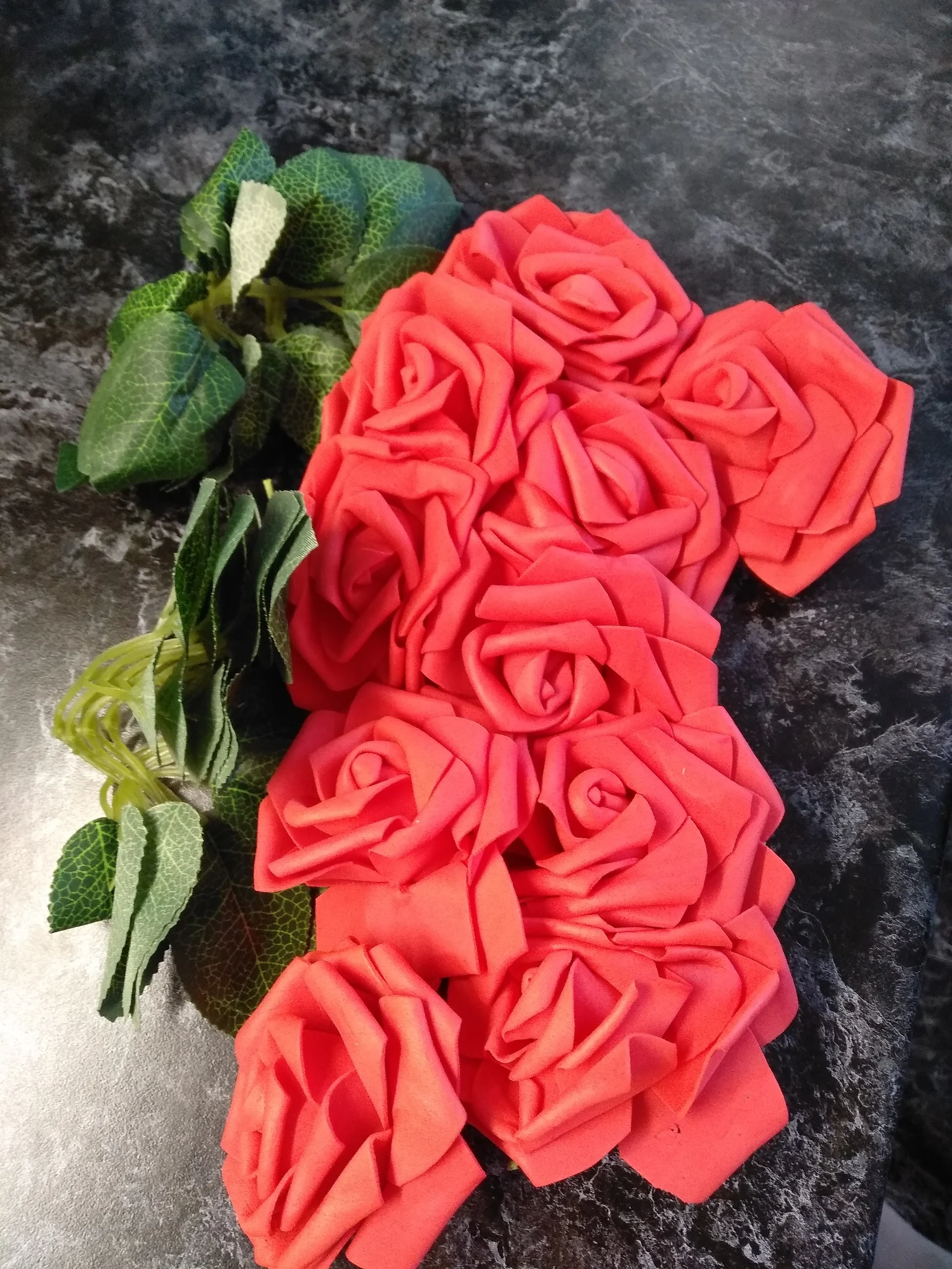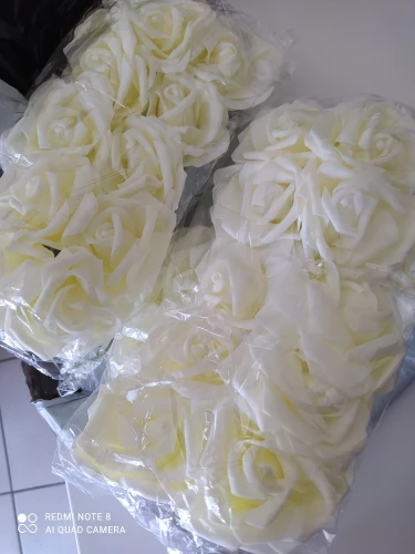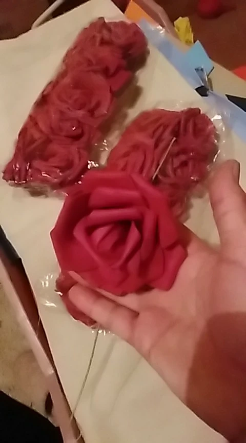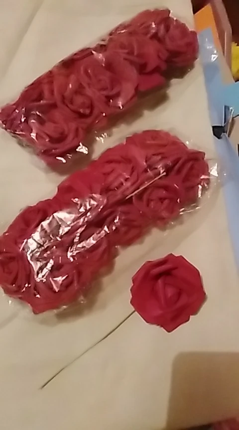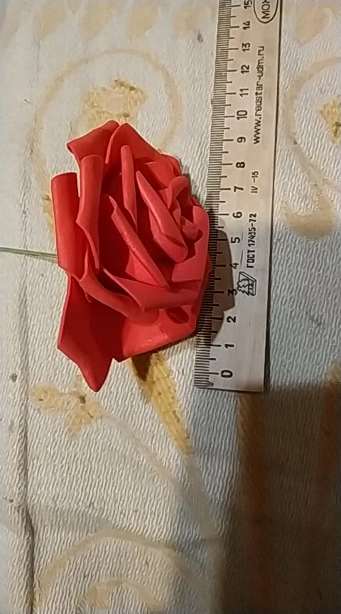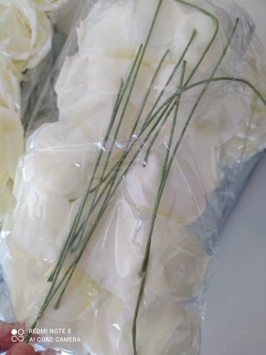 Отличные розочки, пришли помятые, но 3 секунды в горячей воде и вуаля) выглядит хорошо , думаю в цветочную композицию впишутся идеально! Порадовало, что каждая Роза на тонкой ножке из проволоки , что очень удобно ! Рекомендую . Пришло за 2 недели в спб