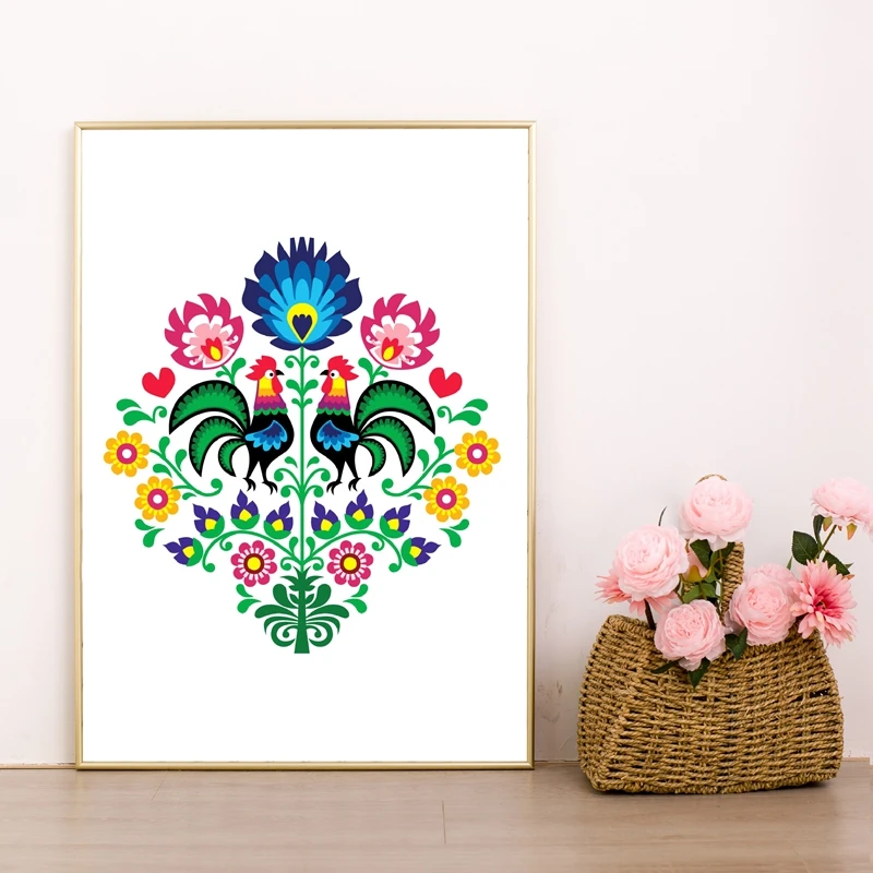 Польская фольклорная Настенная картина, холст, принты, петух, украшение для дома, гостиной, живопись, Польша, красочный узор, фольклорное искусство, картины