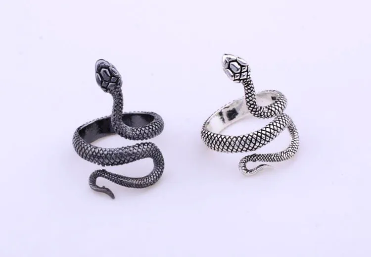 Регулируемое модное кольцо в стиле панк с животным, готические черные Серебряные металлические кольца в виде змеи, мужские кольца унисекс, ювелирные изделия, подарок, Прямая поставка