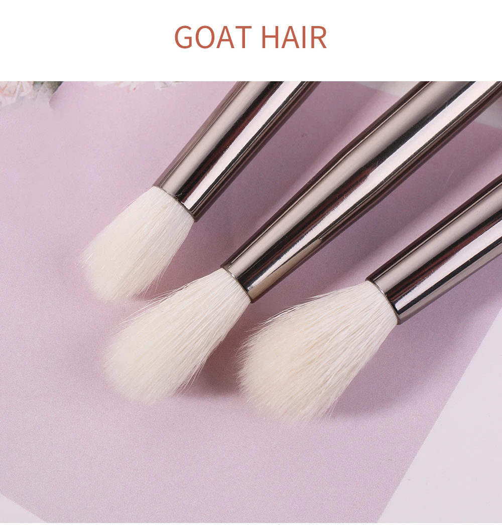 Розовый Золотой алюминиевая трубкаРучка: Розовая матовая ручкаКоличество: 7 шт.Упаковка: коробкаНатуральный ворс: козья шерсть * 4, очень мягкий и плотный.Логотип: блестящий синий, процесс горячего тиснения