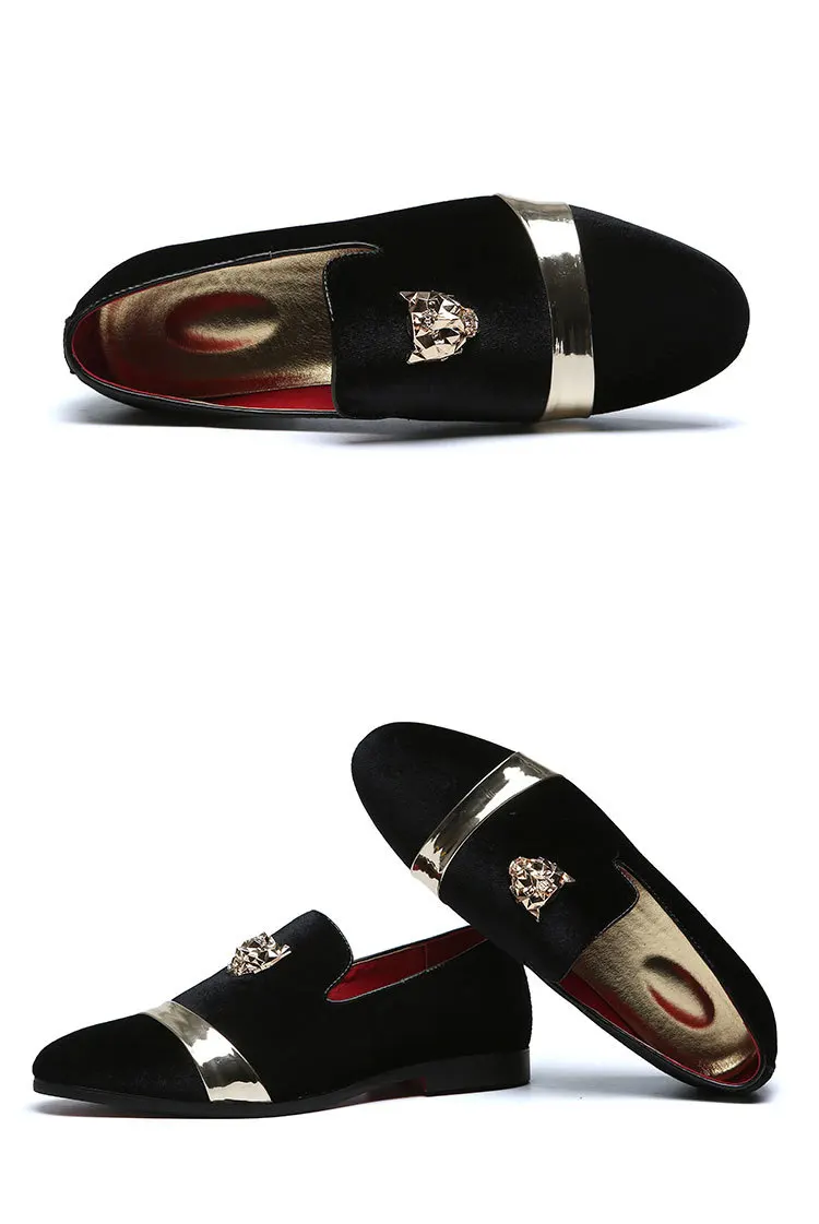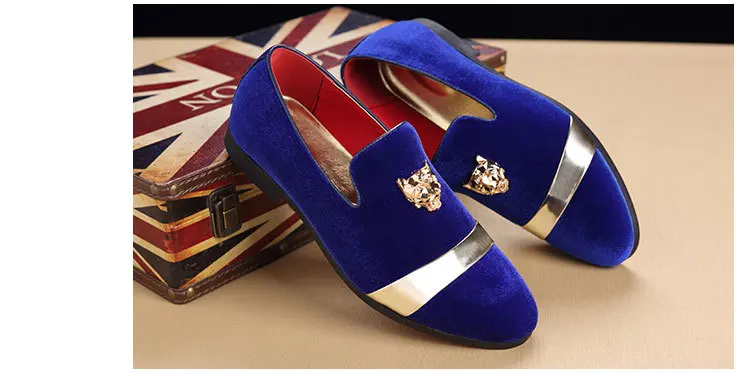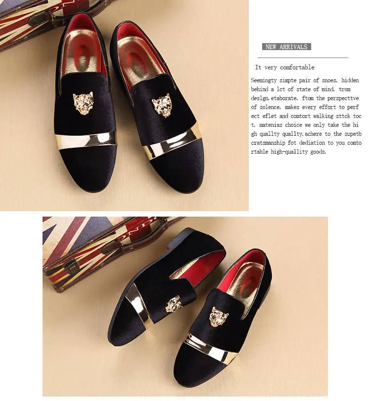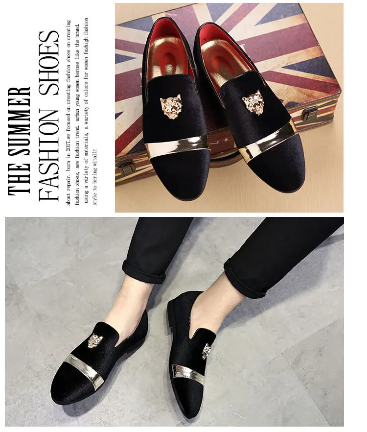 Мужские бархатные Мокасины, свадебные туфли с тигровым золотистым м...