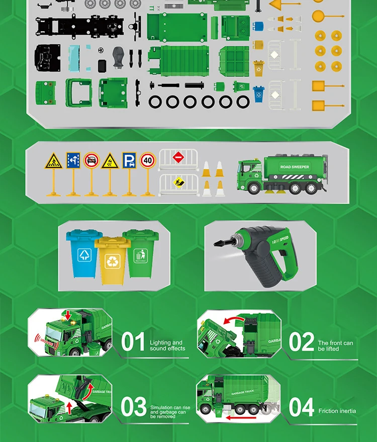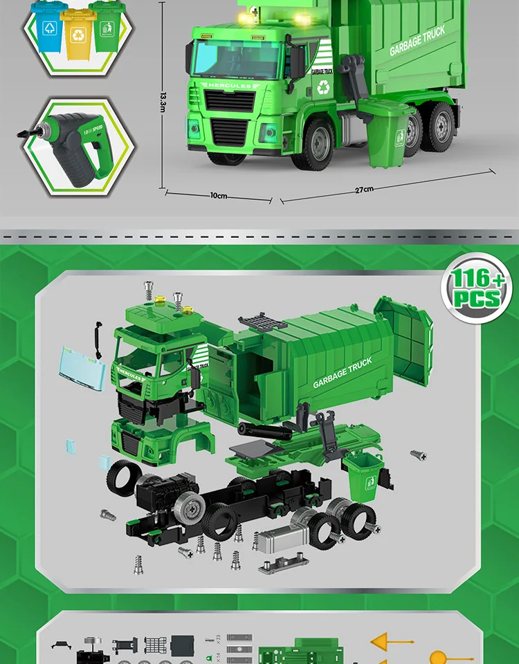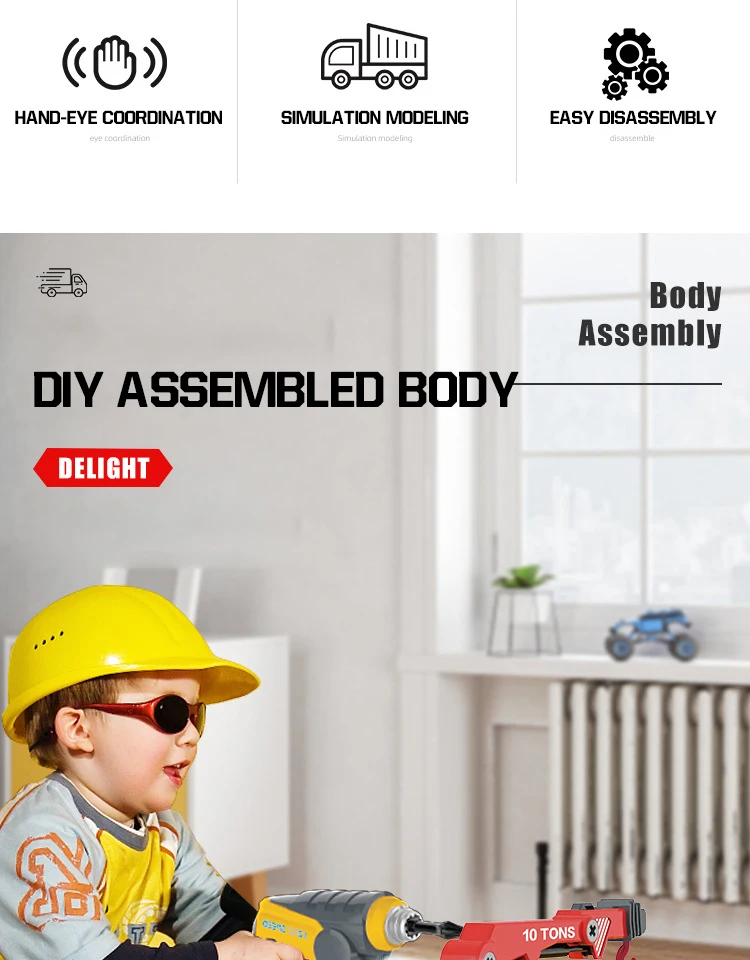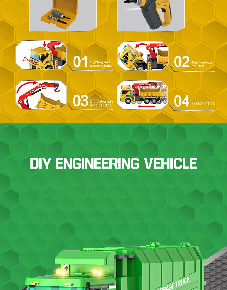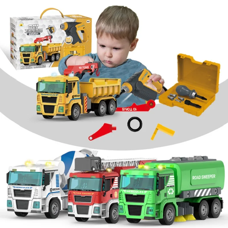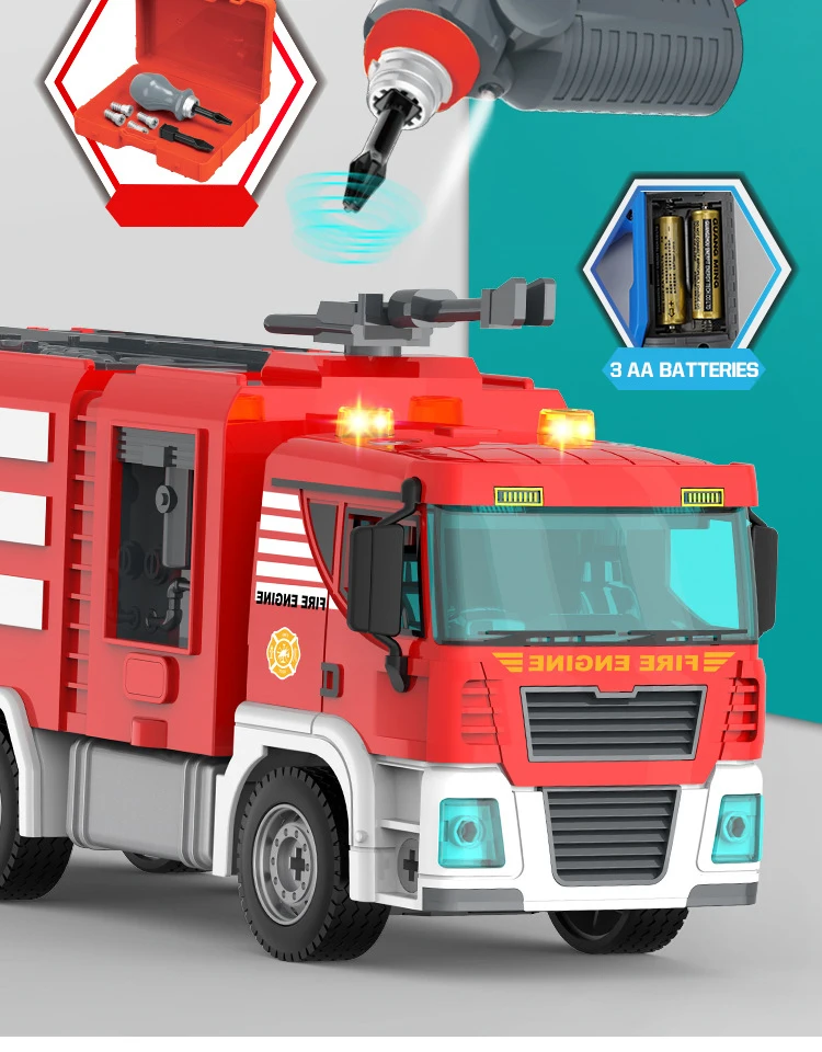 Детская электродрель, инерционная машина для разборки, инерционная пожарная машина для мальчиков, самодельная сборка, световые эффекты, инерционная пожарная машина