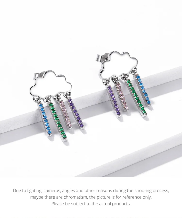 Женские серьги-гвоздики из серебра 925 пробы, с разноцветными фианитами