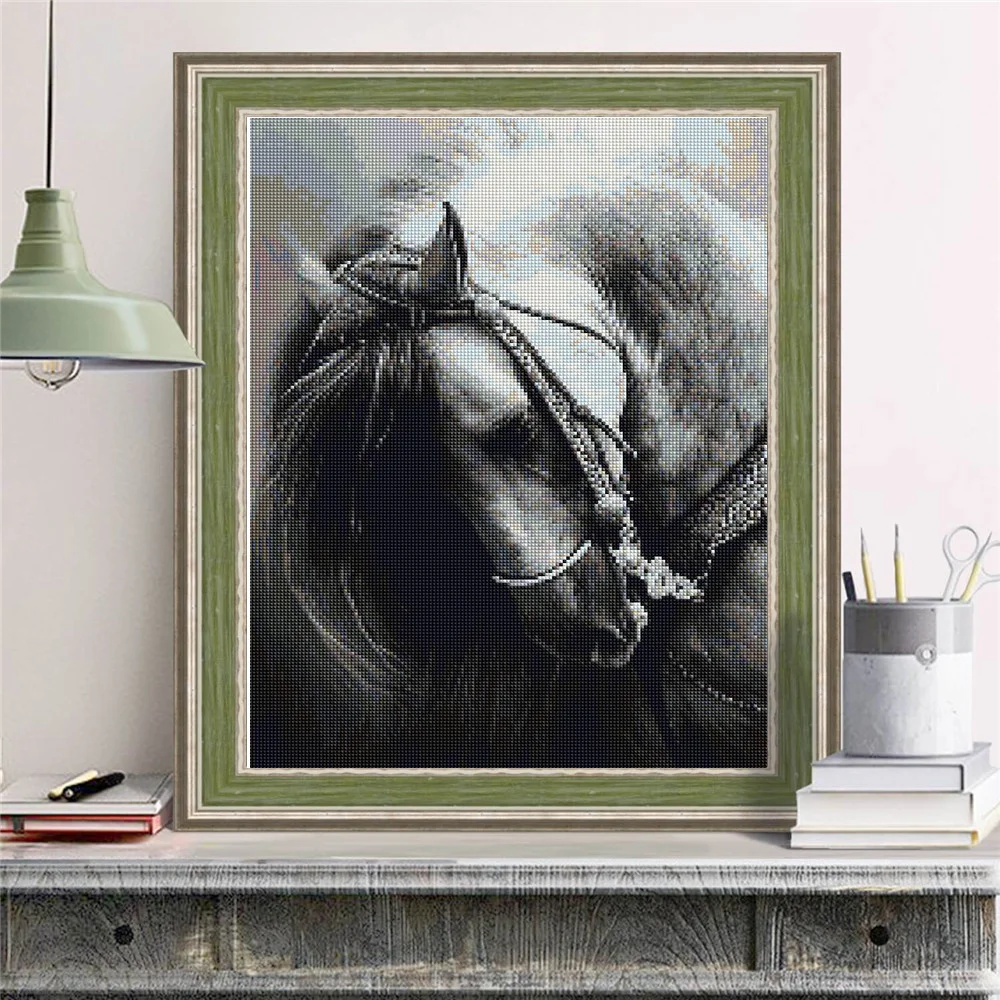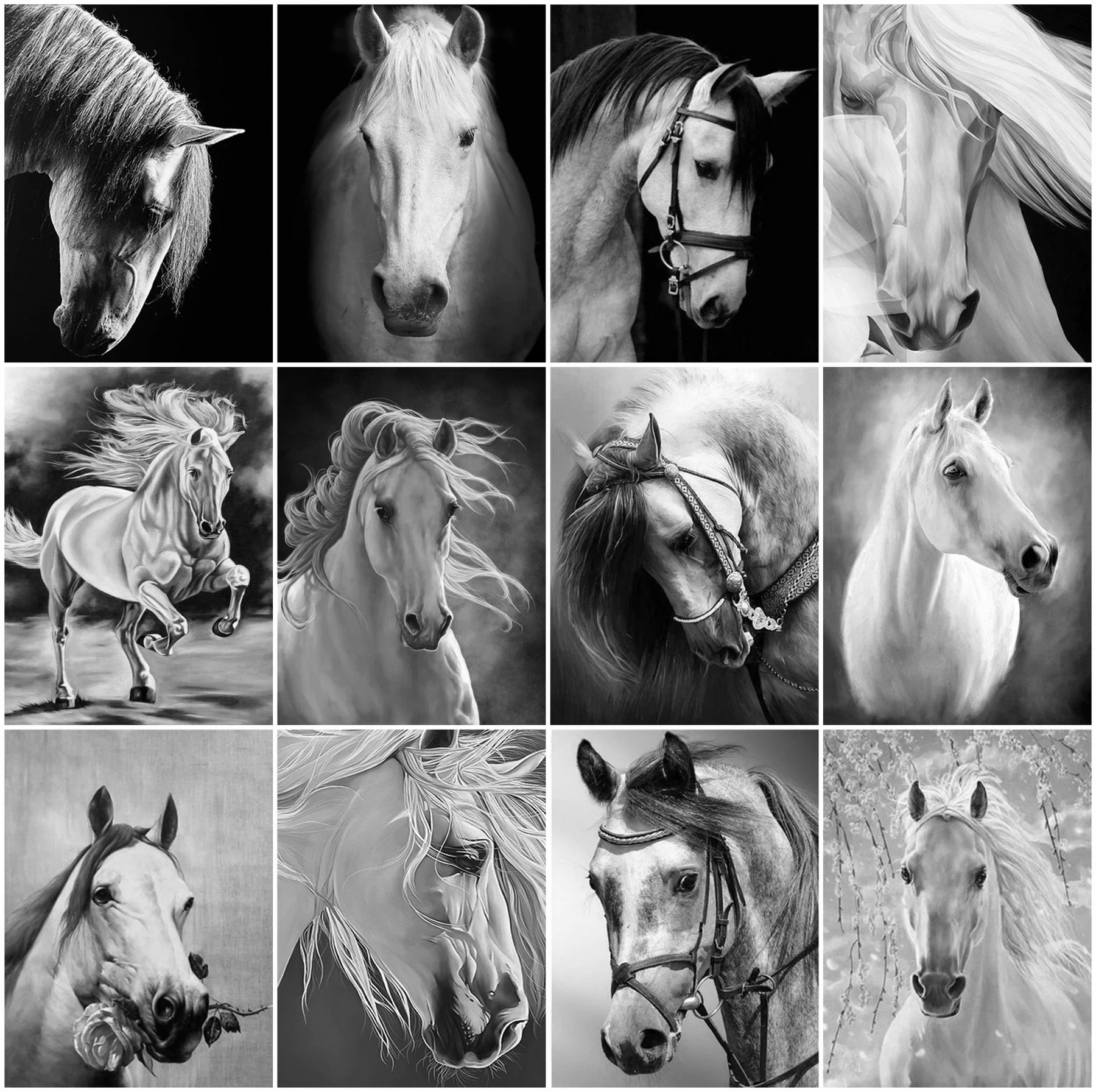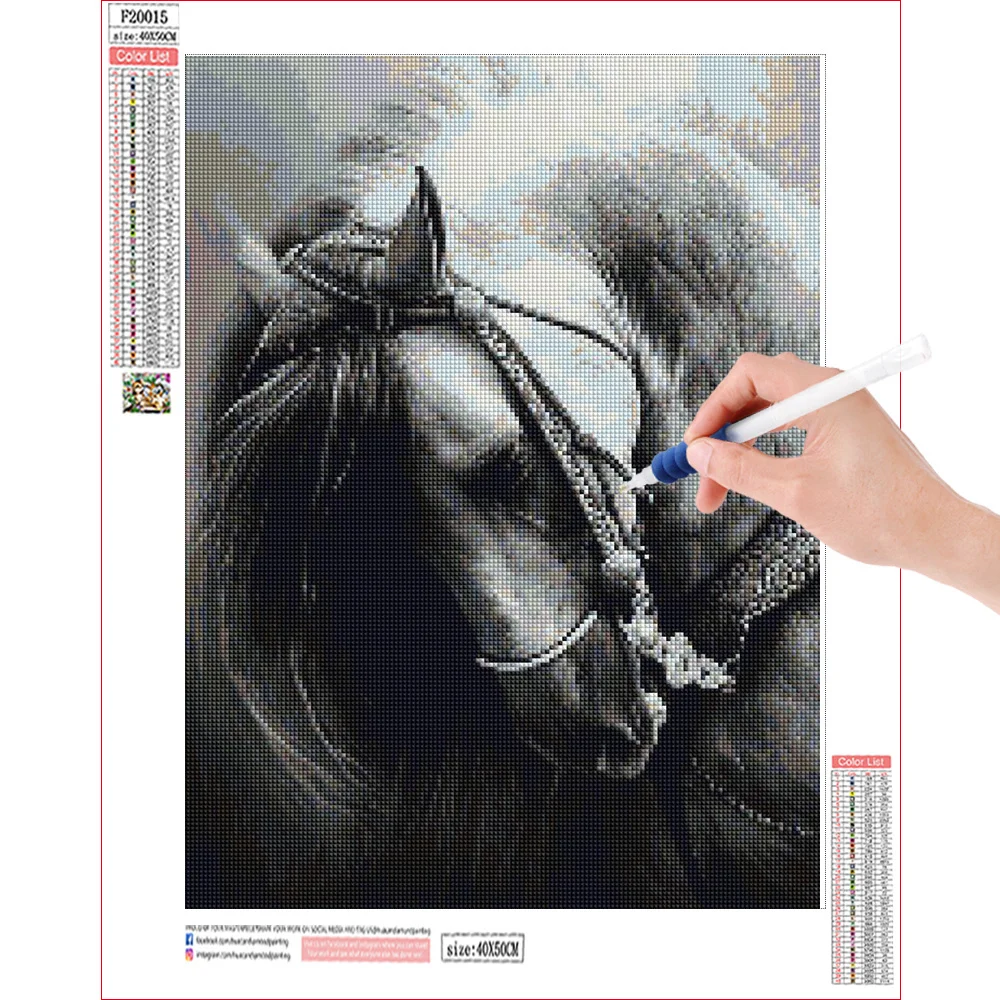Алмазная живопись HUACAN сделай сам, вышивка крестиком, лошадь, мозаика, животное, полный цвет, черный и белый цвет, домашний декор