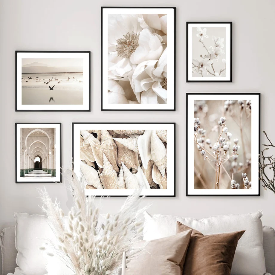 Настенная живопись, холст, бежевый тростник, сушеные цветы, плакаты...