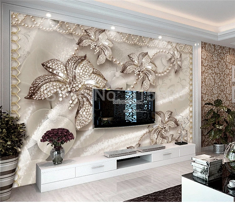 Пользовательские фотообои 3D стерео Роскошные ювелирные изделия цветок гостиная ТВ фон Настенная роспись Водостойкий Холст Papel De Parede