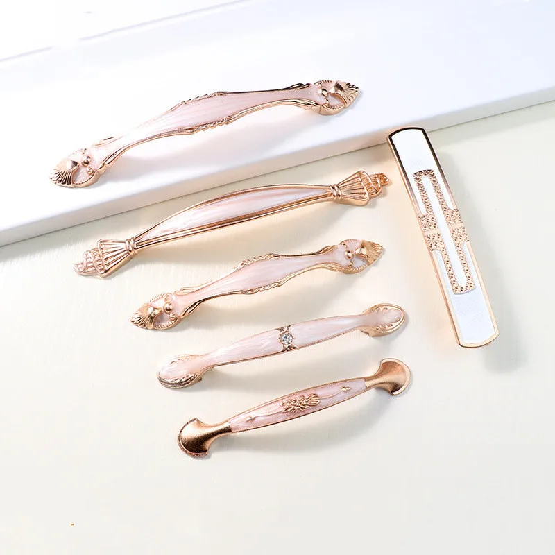 2 предмета в европейском стиле; Цвет розовый, золотой гардеробным дверным сплошная ручка современный шкаф с выдвижными ящиками дверные ручки Американский Алюминий ручка