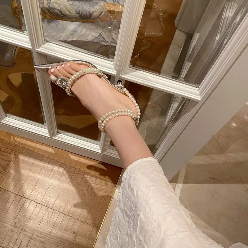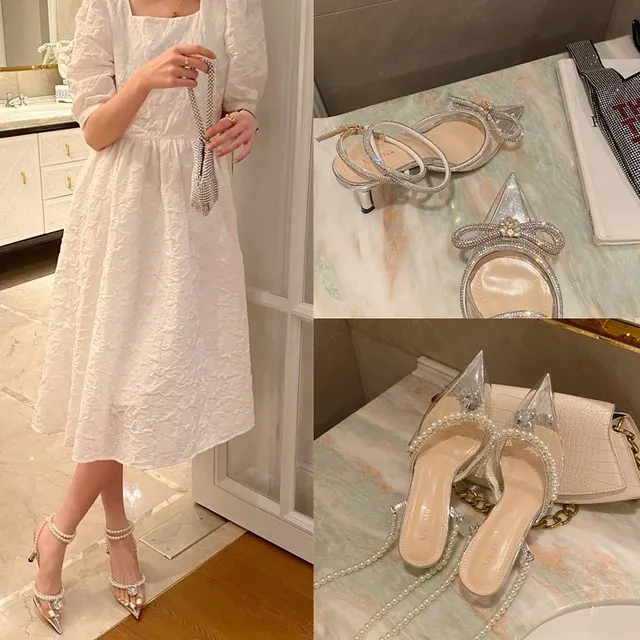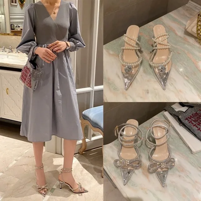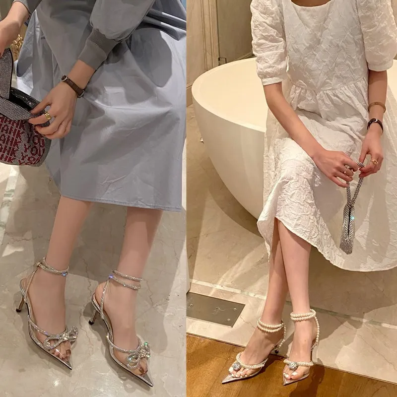 Сандалии женские на высоком каблуке, модные пикантные босоножки с острым носком, прозрачные туфли с узлом-бабочкой, o109, лето