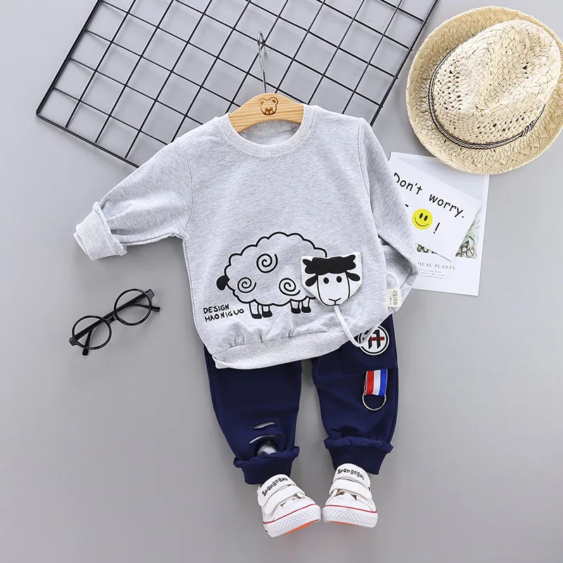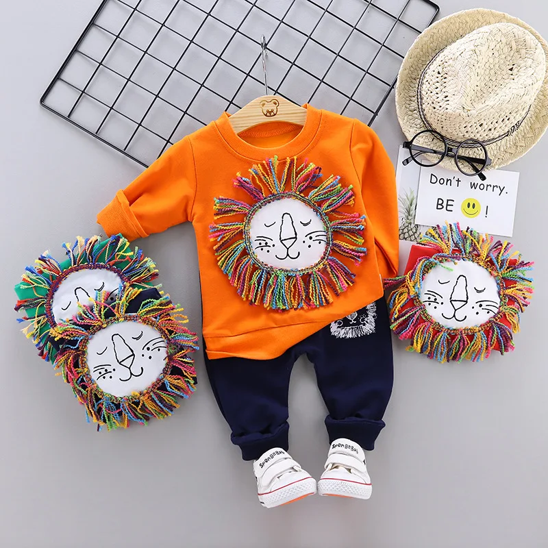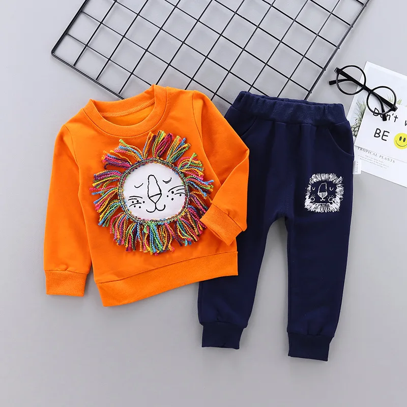 Одежда для маленьких мальчиков, весенний и осенний Детский костюм, Повседневный свитер с круглым вырезом и брюки с бахромой для мальчиков, костюм из двух предметов для маленьких мальчиков